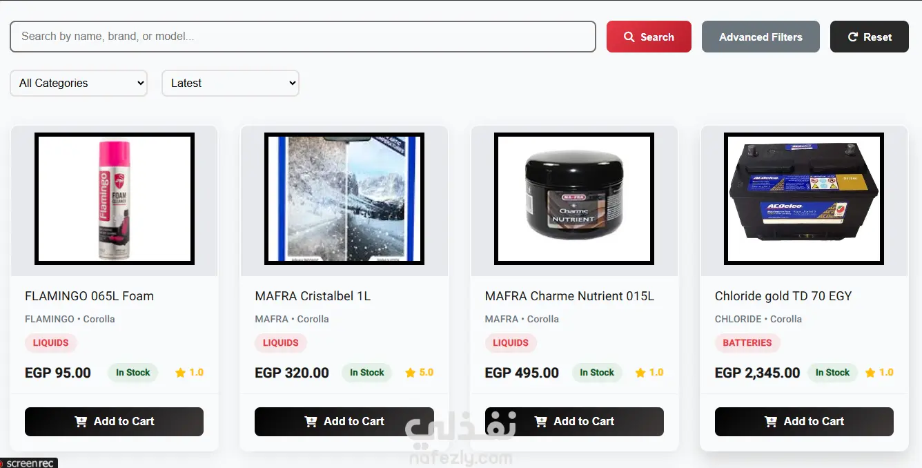 متجر إلكتروني لبيع قطع غيار السيارات بتصنيفات واضحة وسهلة التصفح