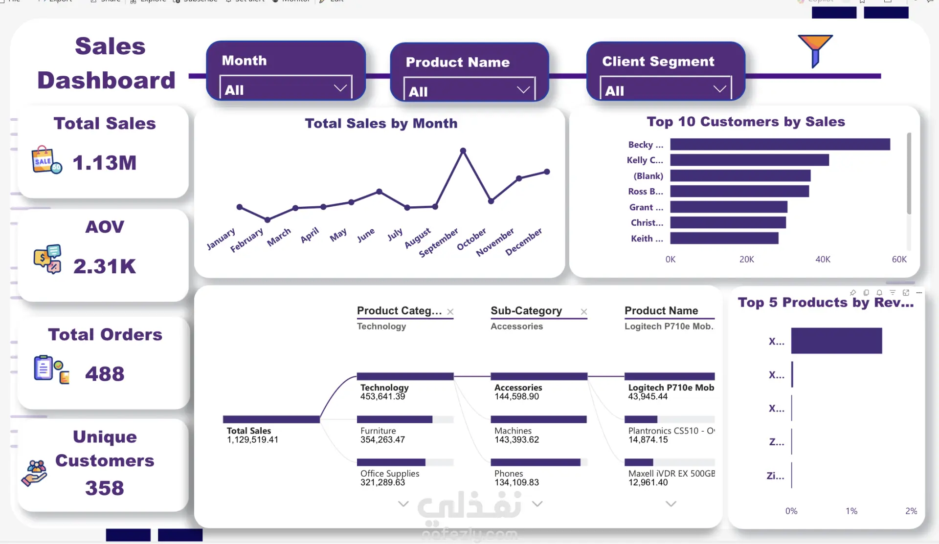 تحليل العملاء والمنتجات: تحديد قائمة الـ 10 العملاء الأكثر مساهمة في الأرباح، وأفضل 5 منتجات مبيعاً.