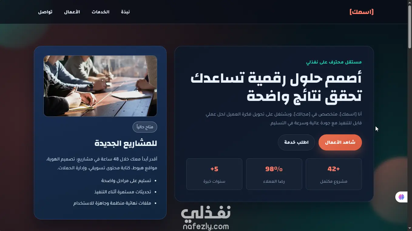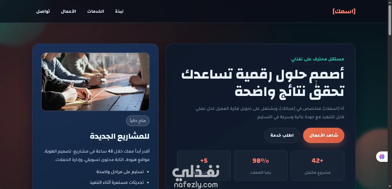 الموقع يهدف إلى مساعدة المستقلين في عرض مهاراتهم بشكل احترافي وجذب عملاء جدد.