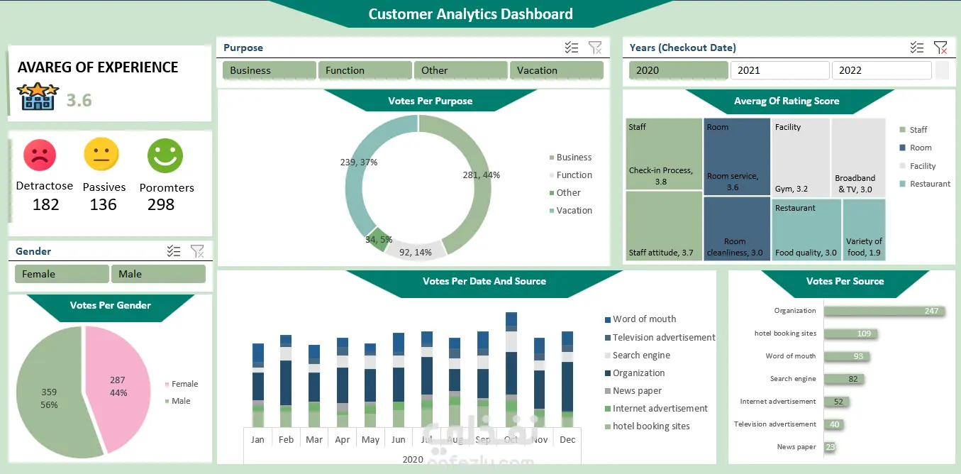 داشبورد تفاعلي لتحليل تجربة العملاء وآرائهم
