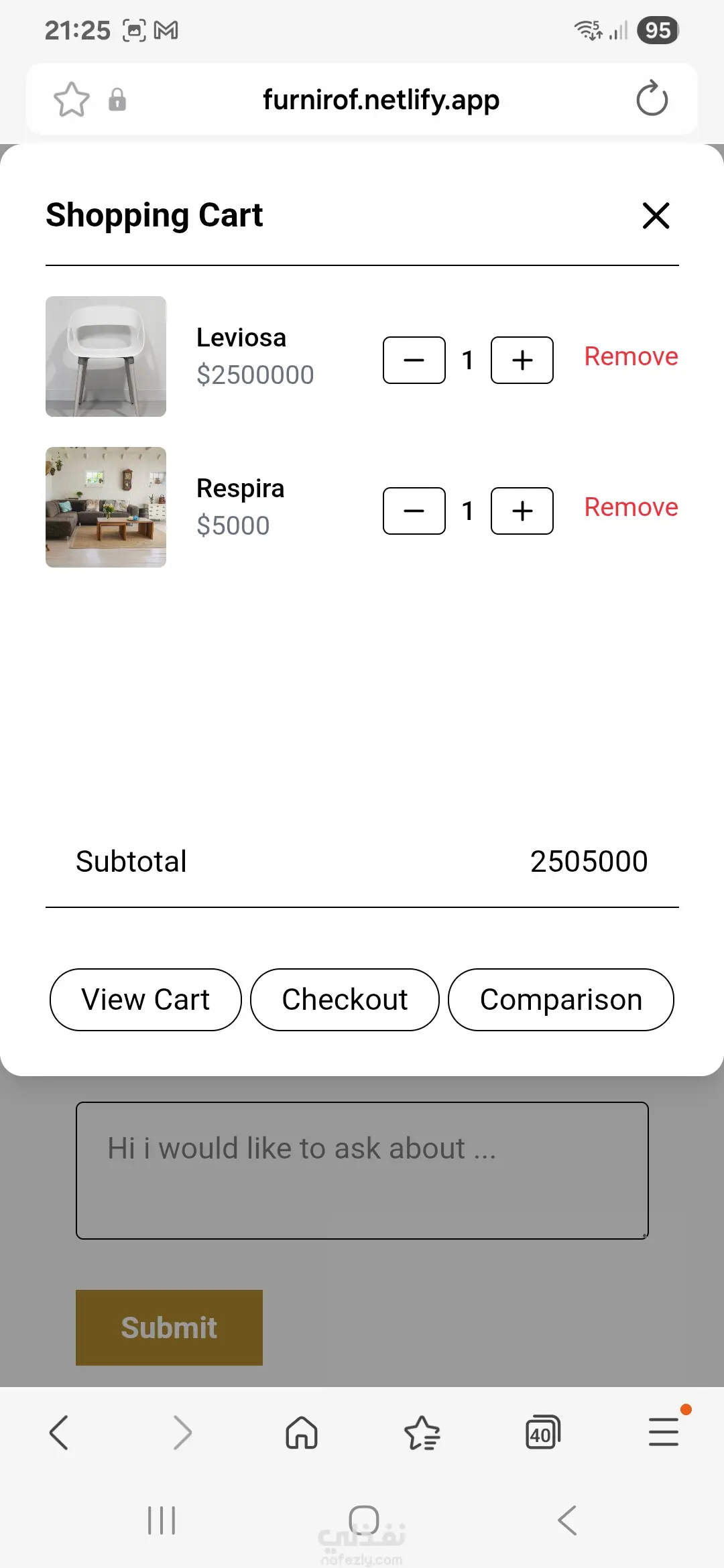 قمت بتطوير موقع تجارة إلكترونية حديث ومتجاوب باستخدام React، يهدف إلى تقديم تجربة مستخدم سلسة وقابلة للتوسع. يتضمن المشروع نظام سلة مشتريات متكامل يتيح للمستخدم إضافة المنتجات وحذفها وتعديل الكمية مع حساب السعر الإجمالي بشكل ديناميكي. كما قمت بتنفيذ نظام تسجيل دخول وتسجيل مستخدمين (Authentication & Authorization)، حيث يمكن لكل مستخدم الوصول إلى بياناته الخاصة مثل السلة والطلبات، مع ضمان فصل البيانات بين المستخدمين. تم أيضًا تطبيق Protected Routes لحماية الصفحات الحساسة مثل صفحة الدفع (Checkout) وصفحة الحساب، بحيث لا يمكن الوصول إليها إلا بعد تسجيل الدخول. يشمل المشروع كذلك نظام إتمام الطلب (Checkout)، وإمكانية مقارنة المنتجات، بالإضافة إلى واجهة مستخدم عصرية ومتجاوبة مع جميع الأجهزة. ✅ أهم المميزات: نظام سلة مشتريات ديناميكي (إضافة / حذف / تعديل الكمية) نظام تسجيل دخول وتسجيل مستخدمين حماية الصفحات باستخدام Protected Routes دعم تعدد المستخدمين (لكل مستخدم بياناته الخاصة) التحقق من صحة البيانات باستخدام React Hook Form و Zod تصميم متجاوب (Responsive) لجميع الشاشات إضافة Chatbot ذكي داخل الموقع لمساعدة المستخدمين في البحث عن المنتجات والإجابة على الأسئلة الشائعة اعتمادًا على بيانات المنتجات المخزنة في ملفات JSON. تطوير مساعد افتراضي يتيح للمستخدم الاستفسار عن الأسعار، الخصومات، والمنتجات المناسبة، مع ربطه مباشرة ببيانات المنتجات. تنفيذ AI-inspired chatbot لتحسين تجربة المستخدم عبر تقديم اقتراحات ومنتجات مناسبة بناءً على استفساراته.