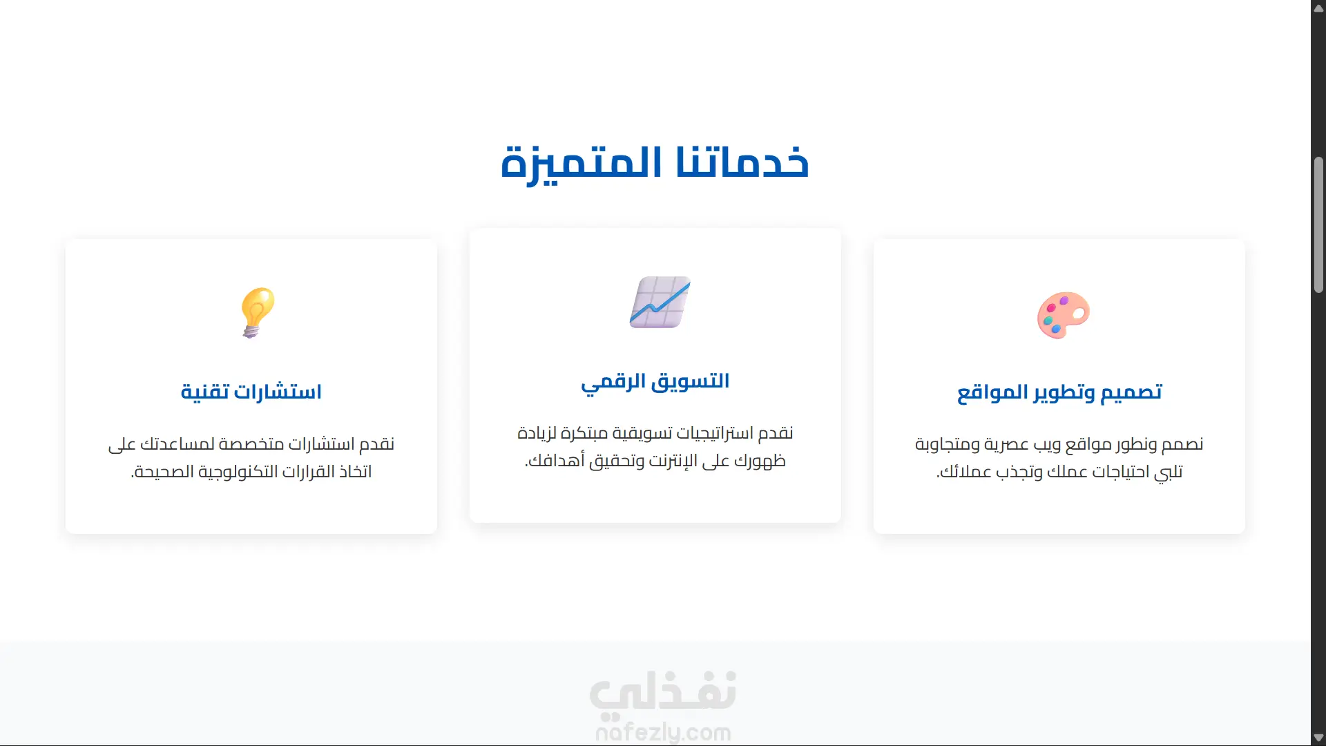 قمت بتصميم وتطوير صفحة هبوط (Landing Page) حديثة باللغة العربية مناسبة للشركات والخدمات الرقمية. 🔹 تصميم متجاوب يعمل على جميع الأجهزة 🔹 واجهة بسيطة وجذابة (UI/UX) 🔹 تنظيم احترافي للأقسام لسهولة التصفح 🔹 أقسام تشمل: الخدمات، من نحن، آراء العملاء، و CTA