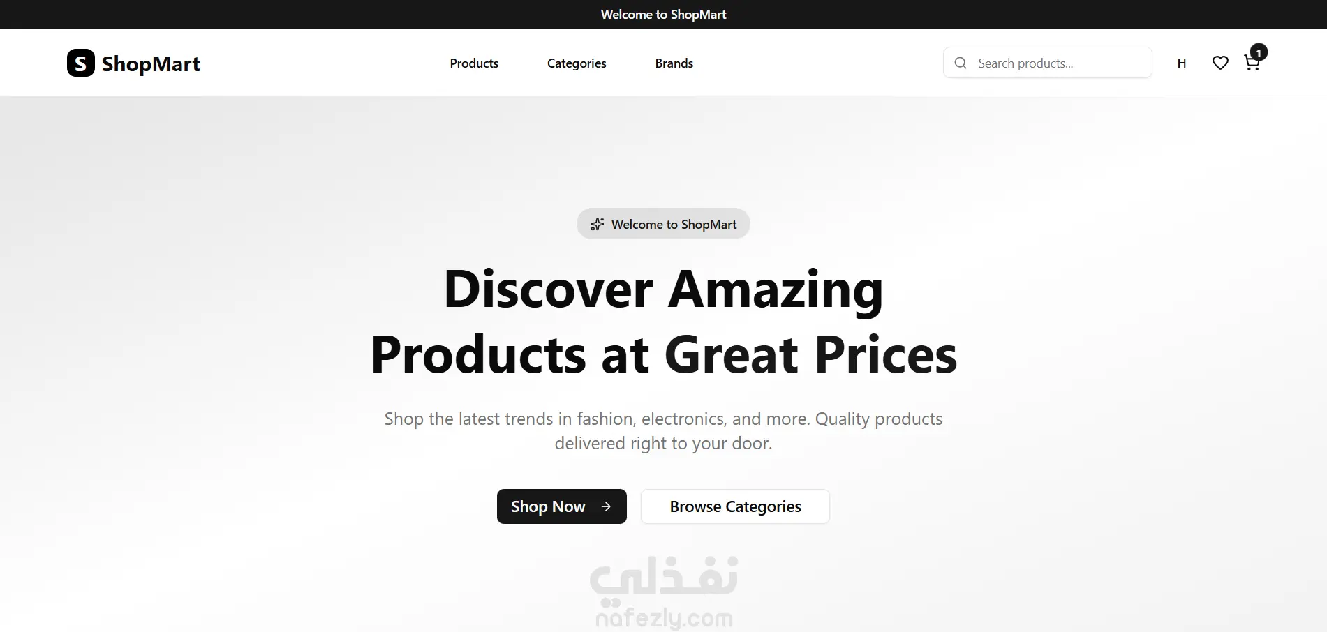 ShopMart هو تطبيق تجارة إلكترونية متكامل قمت بتطويره باستخدام Next.js 16 (App Router) و TypeScript، يهدف لتقديم تجربة تسوق احترافية بمعايير إنتاج حقيقية (Production-Ready).