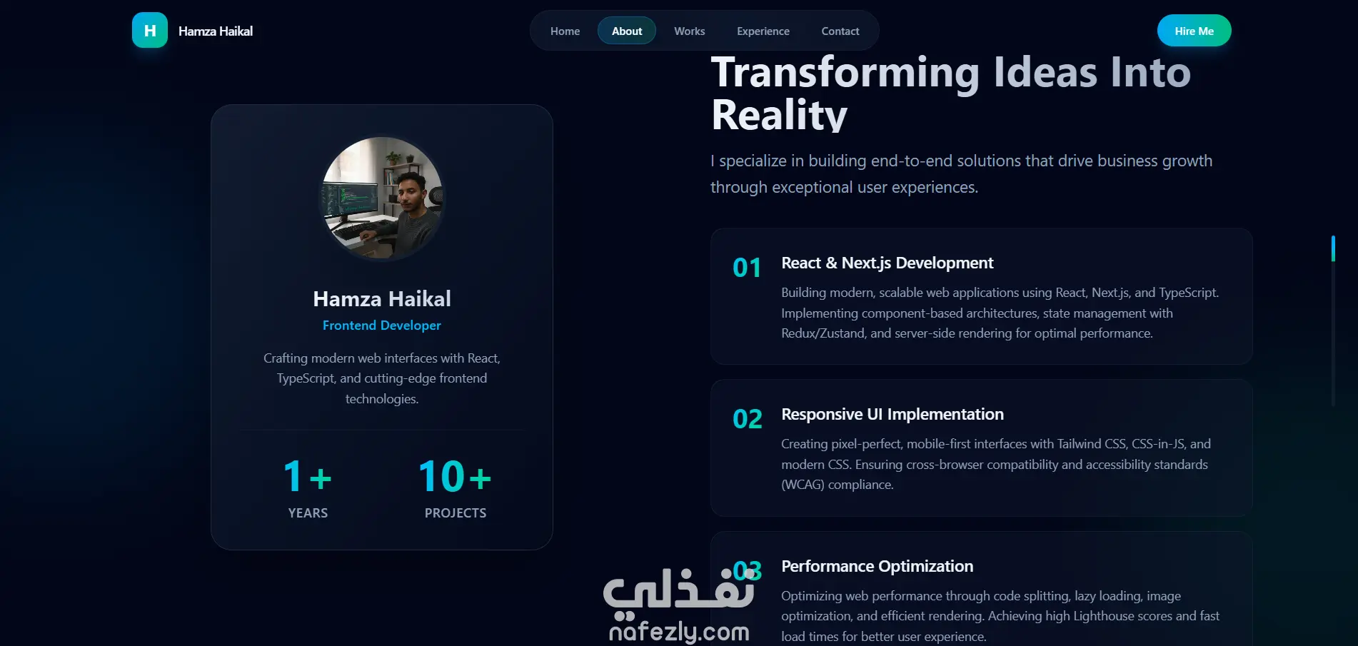 قمت بتصميم وتطوير موقع بورتفوليو شخصي عصري يعكس هويتي كمطور واجهات أمامية، مع التركيز على الأداء العالي، تجربة المستخدم، والانيميشن الاحترافية. الموقع مبني باستخدام أحدث التقنيات مثل React 19 وVite وTailwind CSS 4 وFramer Motion، ويهدف إلى تقديم تجربة تفاعلية سلسة مع تصميم بصري مميز يعكس مستوى تقني متقدم. أهم المميزات: أداء سريع جدًا مع تحسينات متقدمة للتحميل وتقسيم الكود تصميم عصري بتأثيرات بصرية حديثة (Glass UI & Gradients) انتقالات صفحات وانيميشن احترافية عناصر وخلفيات ثلاثية الأبعاد باستخدام Three.js تصميم متجاوب بالكامل لجميع الشاشات نموذج تواصل مباشر عبر البريد تهيئة كاملة لمحركات البحث (SEO Optimization) دمج أدوات تحليل الأداء والسلوك (Analytics & Tracking)