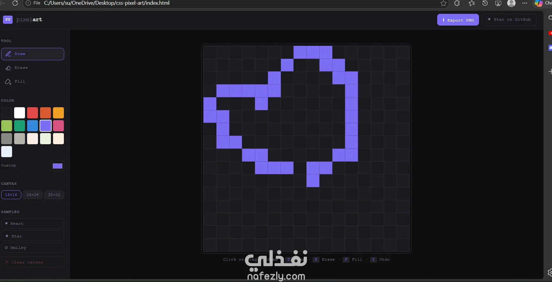 Draw, Erase, and Fill tools with keyboard shortcuts (D / E / F / Z)