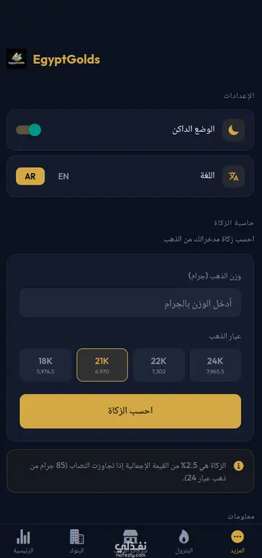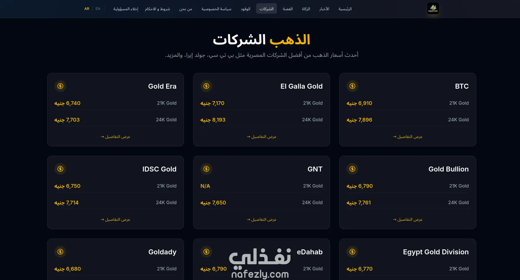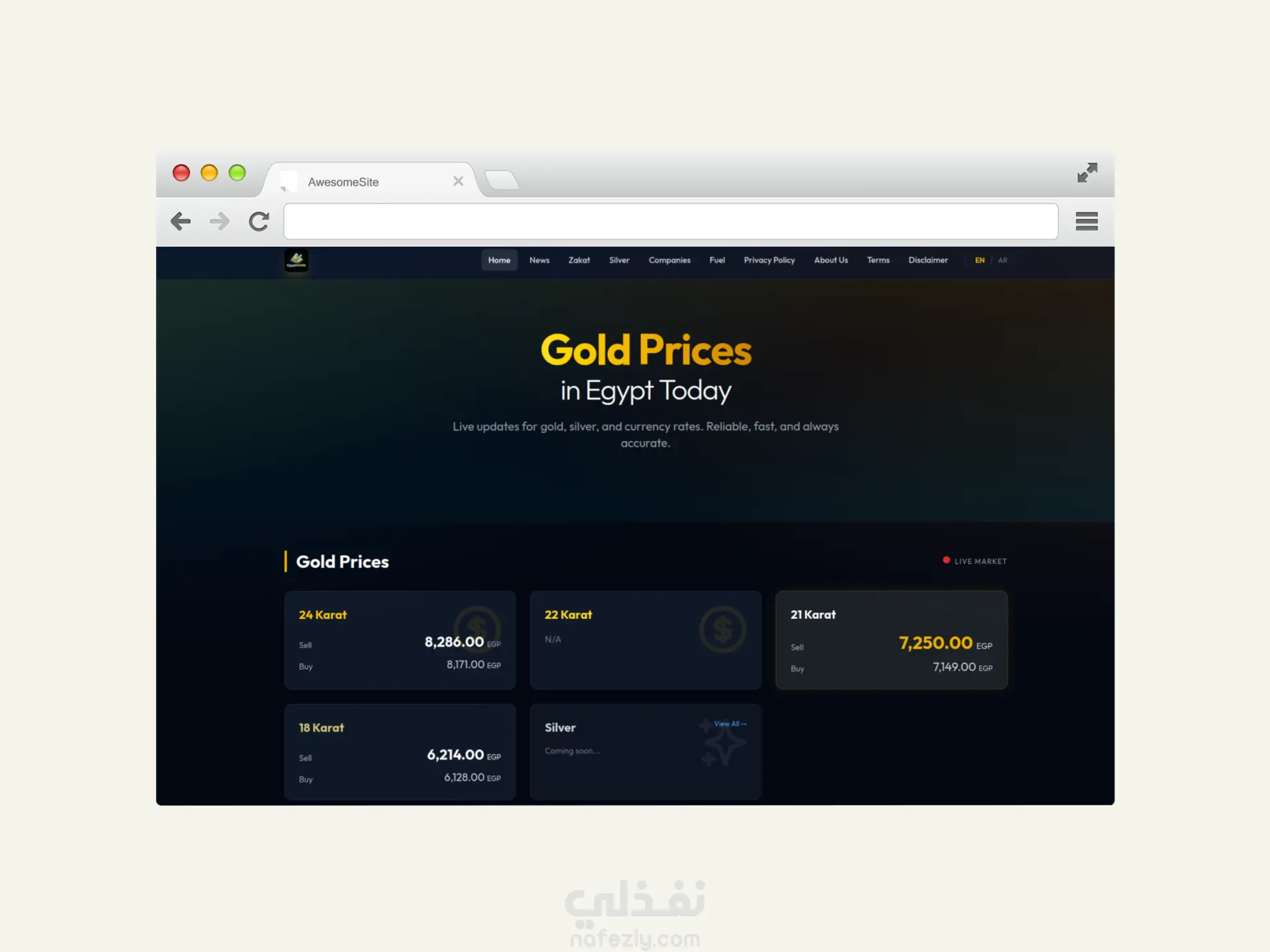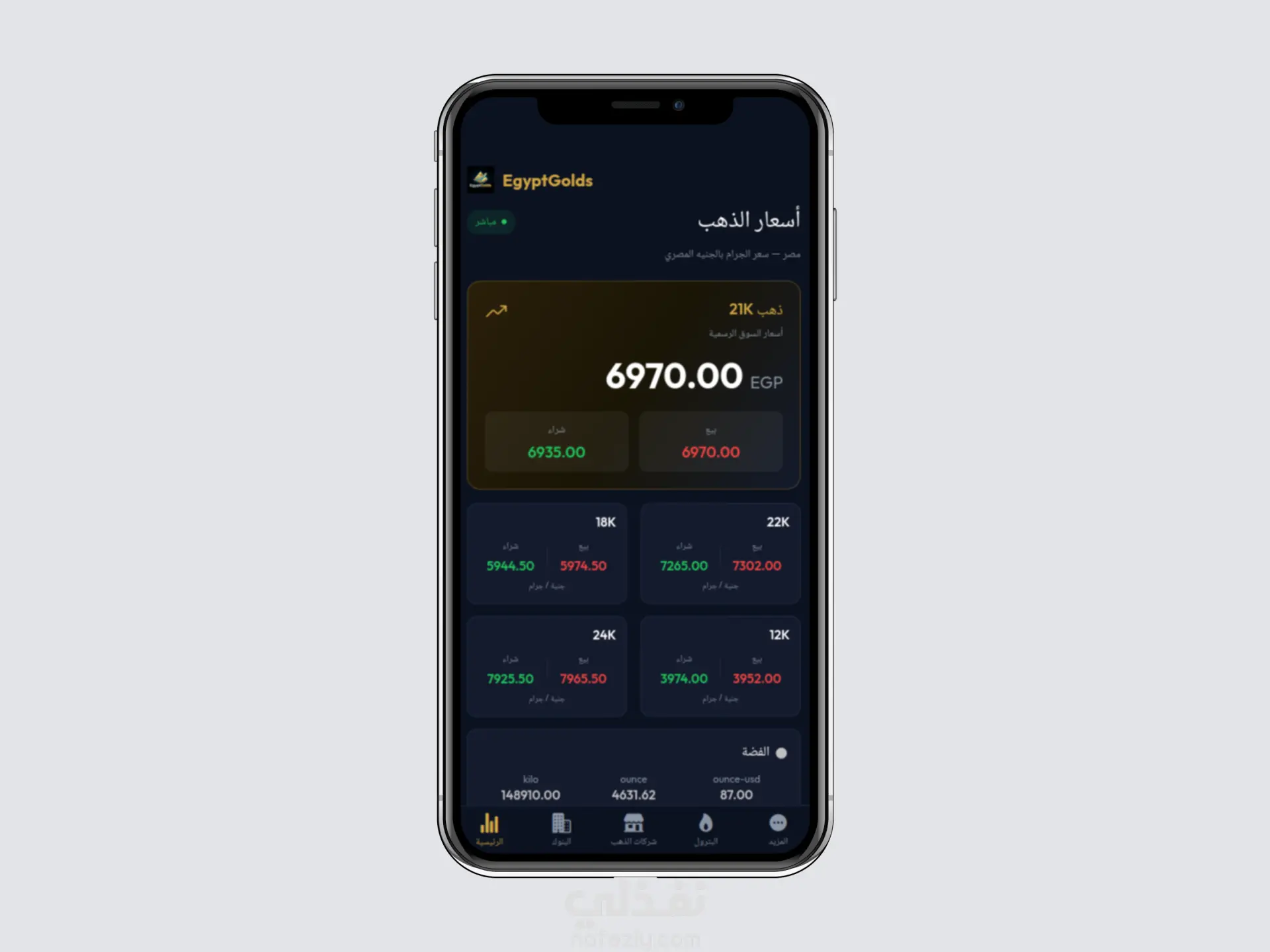 موقع إلكتروني و تطبيق اندرويد لعرض اسعار الذهب و العادن و المواد البتروليه في مصر كما يحتوي ايضا التطبيق على حاسبة تحسب لك الذكاة بدقة تم تطوير الموقع الالكتروني و الـ BackEnd بستخدام لارافيل و التطبيق بستخدام React Native