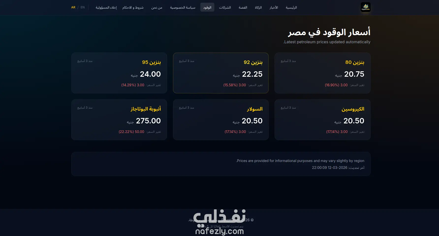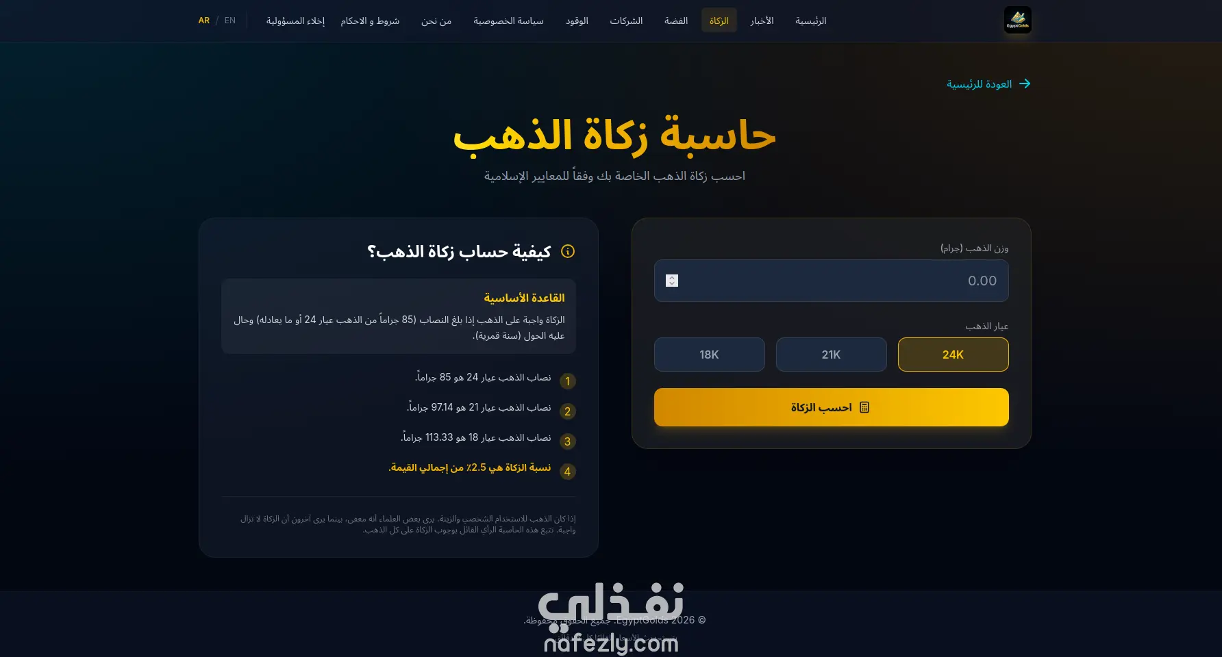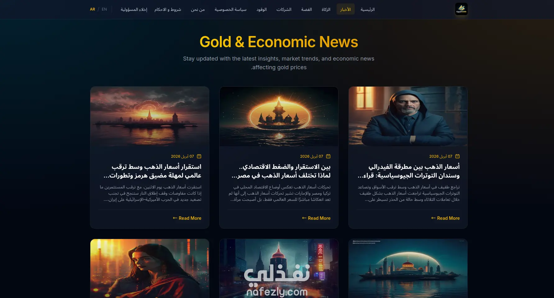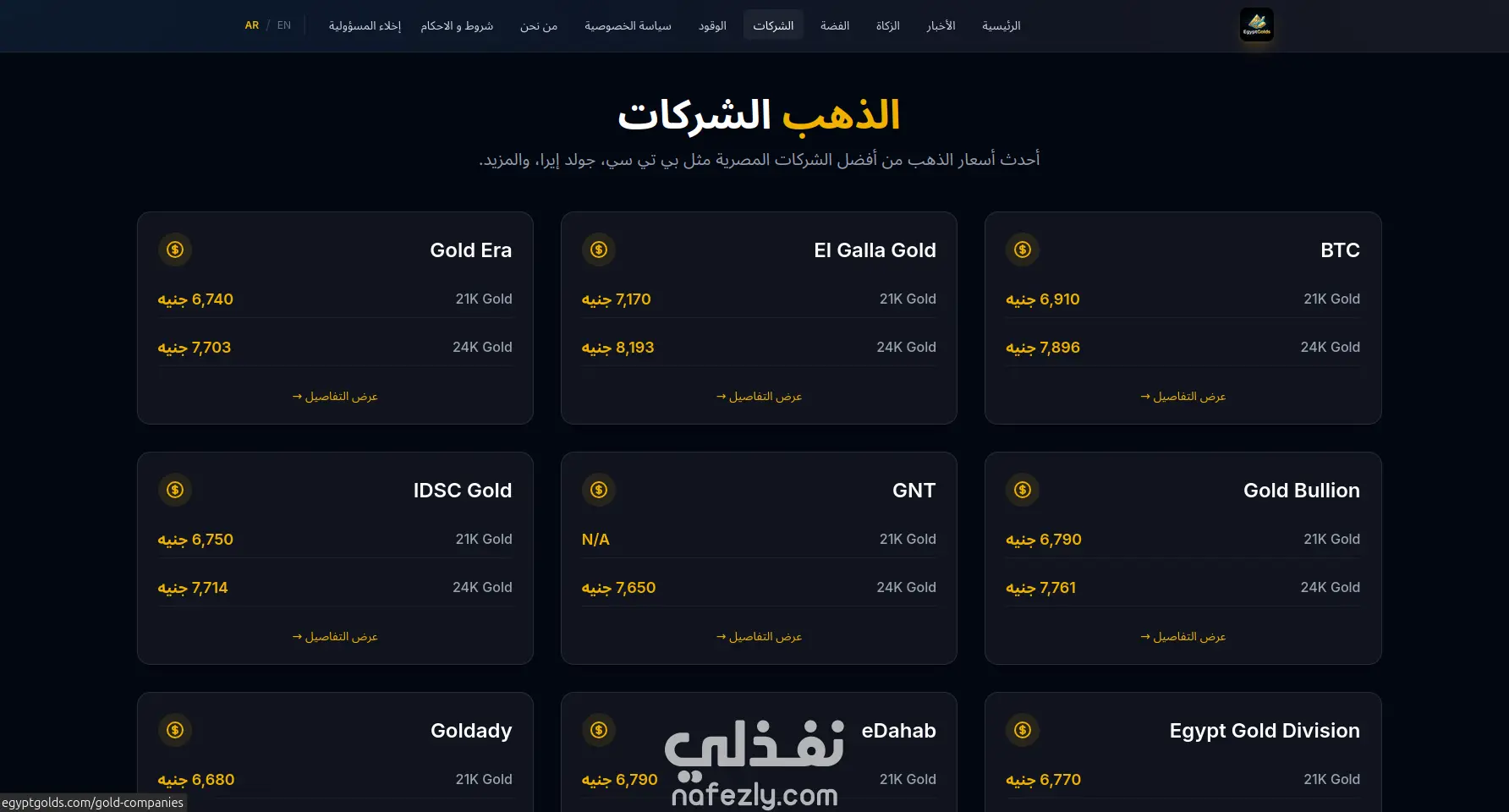 موقع إلكتروني و تطبيق اندرويد لعرض اسعار الذهب و العادن و المواد البتروليه في مصر كما يحتوي ايضا التطبيق على حاسبة تحسب لك الذكاة بدقة تم تطوير الموقع الالكتروني و الـ BackEnd بستخدام لارافيل و التطبيق بستخدام React Native
