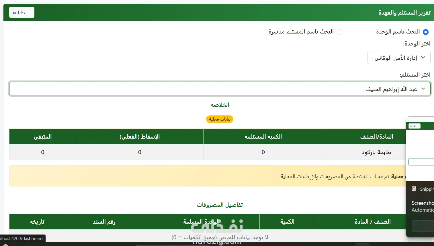 عباره ع موقع لاضافه وادراه الاجهزه وتسليمها للادارات وانشاؤ التقارير بخط سير كل جهاز من دخولها الي المخزن الي خروجها من المخزن او ارشفتها لقد طورت الوجه الامامي ف الموقع