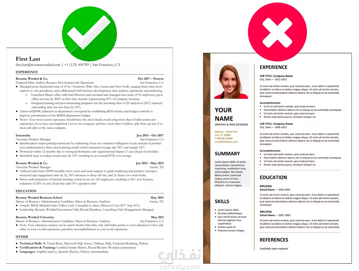 تصميم أنيق وخفيف بدون عناصر تعيق القراءة من قبل أنظمة الـATS.