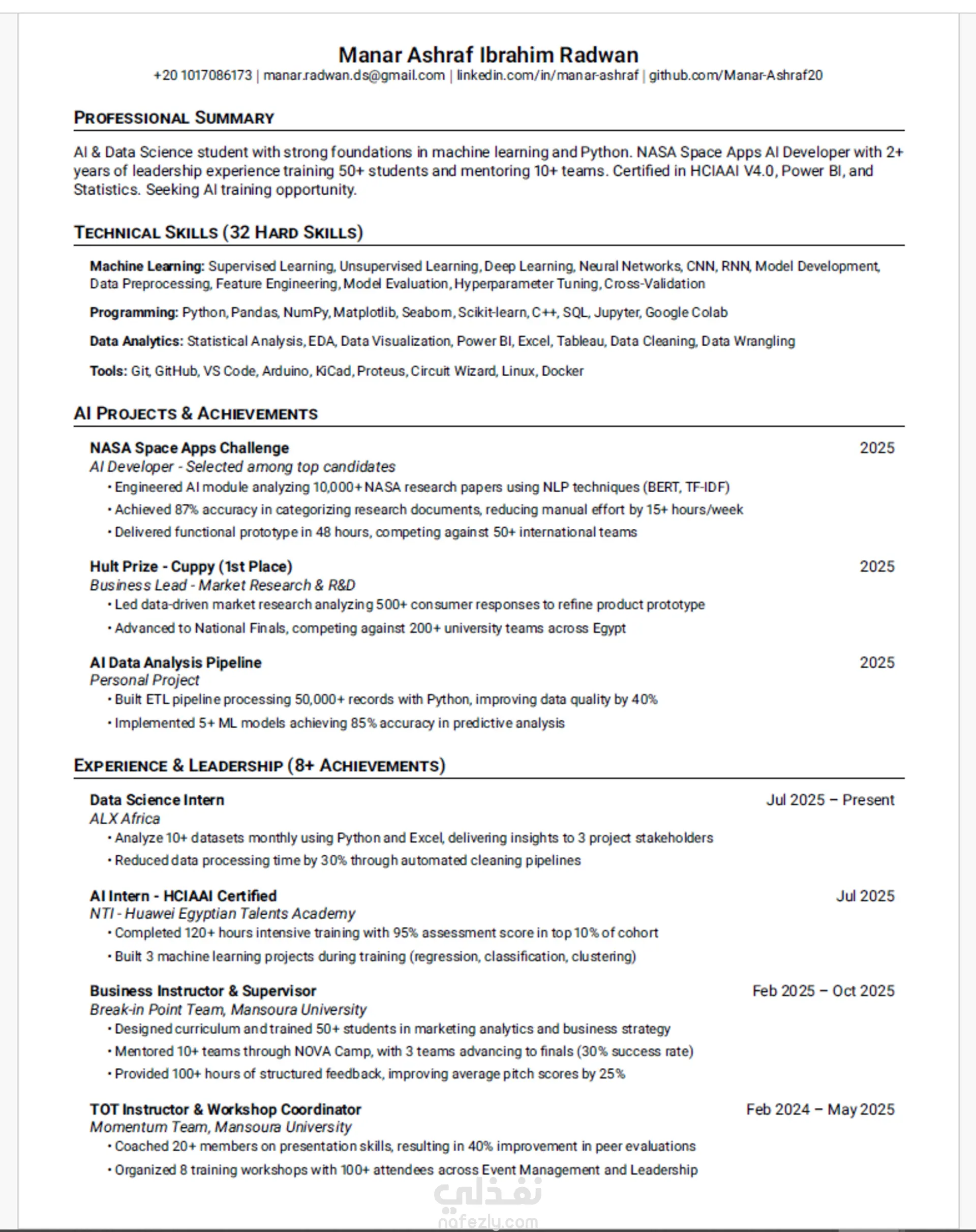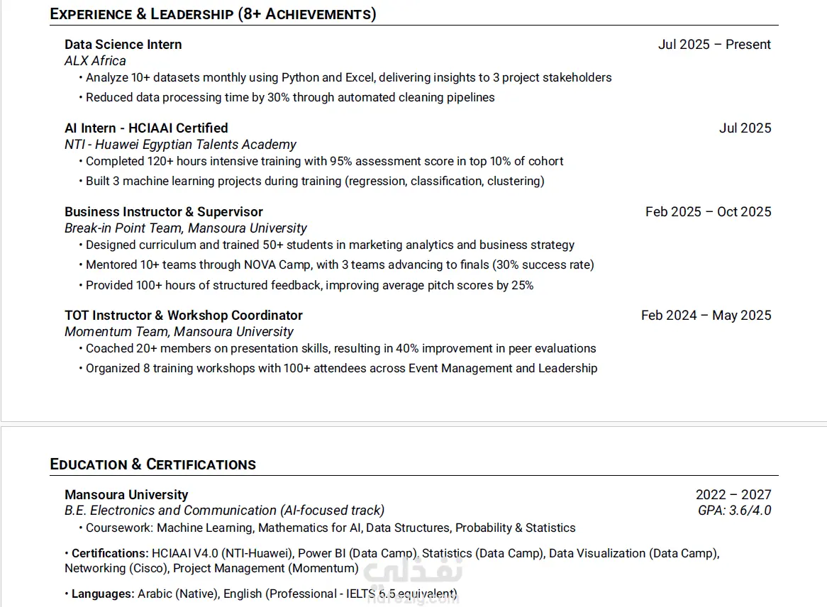 قمت بتصميم وإنشاء سير ذاتية احترافية متوافقة مع أنظمة تتبع المتقدمين (ATS)، لمساعدة العملاء على اجتياز الفلاتر الإلكترونية وتحقيق ظهور أفضل لسيرهم الذاتية أمام مسؤولي التوظيف.