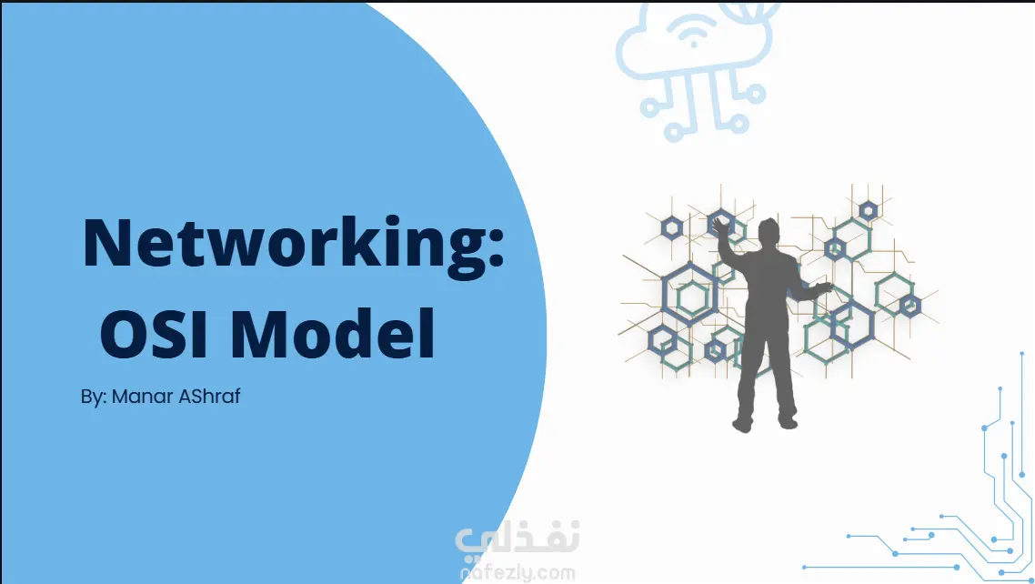 في هذا المشروع، قمت بتصميم عرض تقديمي تعليمي يشرح نموذج الاتصال المفتوح (OSI Model) بأسلوب بصري يجمع بين الدقة التقنية وسهولة الفهم.تبسيط المعقد: تحويل المفاهيم الهندسية السبعة (من الطبقة الفيزيائية إلى طبقة التطبيقات) إلى شرائح منظمة منطقياً.الدقة العلمية: شرح وظائف كل طبقة (مثل التشفير، التوجيه، وكشف الأخطاء) مع ذكر البروتوكولات المرتبطة مثل TCP/UDP وHTTPS.التصميم البصري: استخدام رسوم توضيحية (Infographics) تمثل تدفق البيانات بين المرسل والمستقبل لتعزيز استيعاب المعلومة.الأدوات المستخدمة: تم تصميم العرض ليكون مرجعاً أكاديمياً مدعماً بالمصادر الموثوقة.