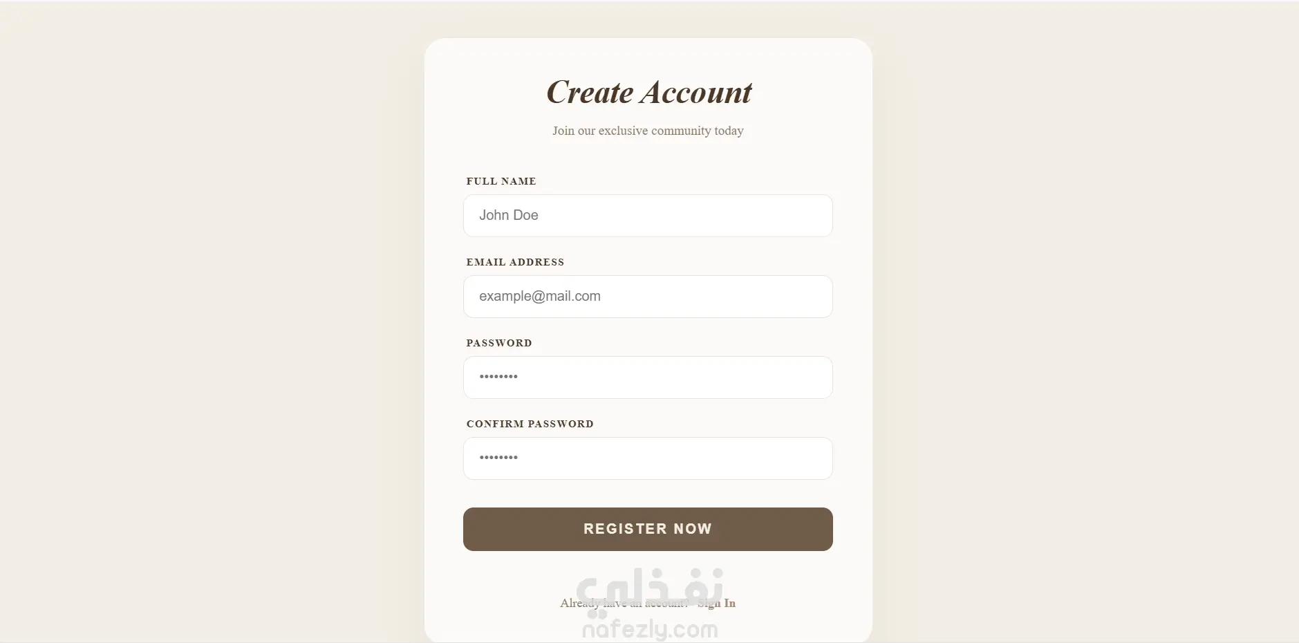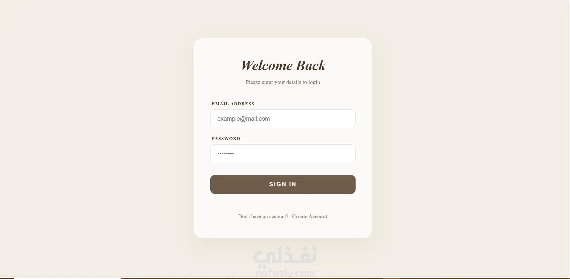 تصميم واجهة أنيقة باستخدام ألوان تعكس الفخامة (Gold – Beige – Brown).