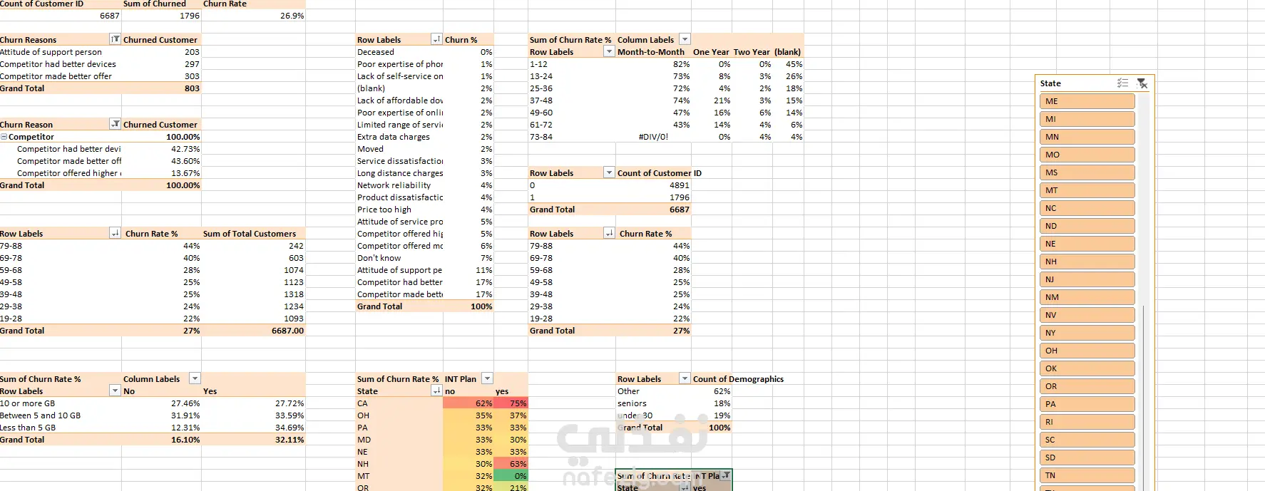 تساعد هذه اللوحة الشركة على فهم قاعدة العملاء وتحليل أسباب فقدان العملاء، مما يساهم في تحسين المبيعات واتخاذ قرارات أفضل.