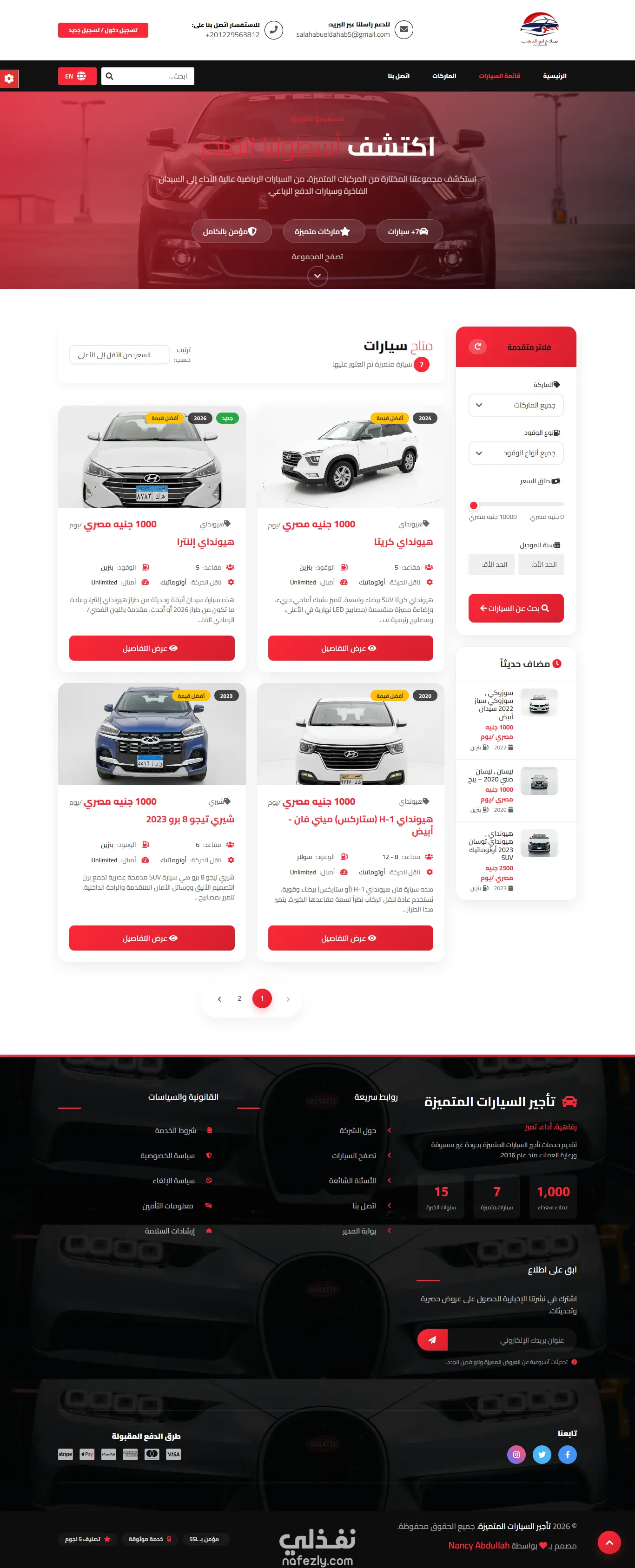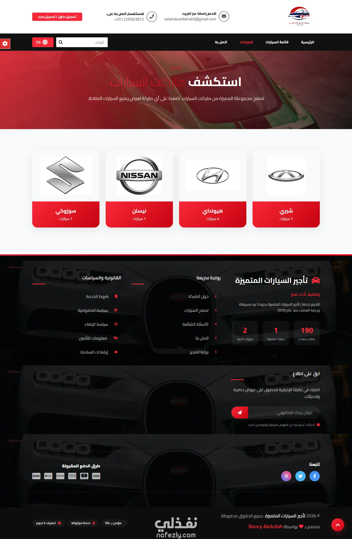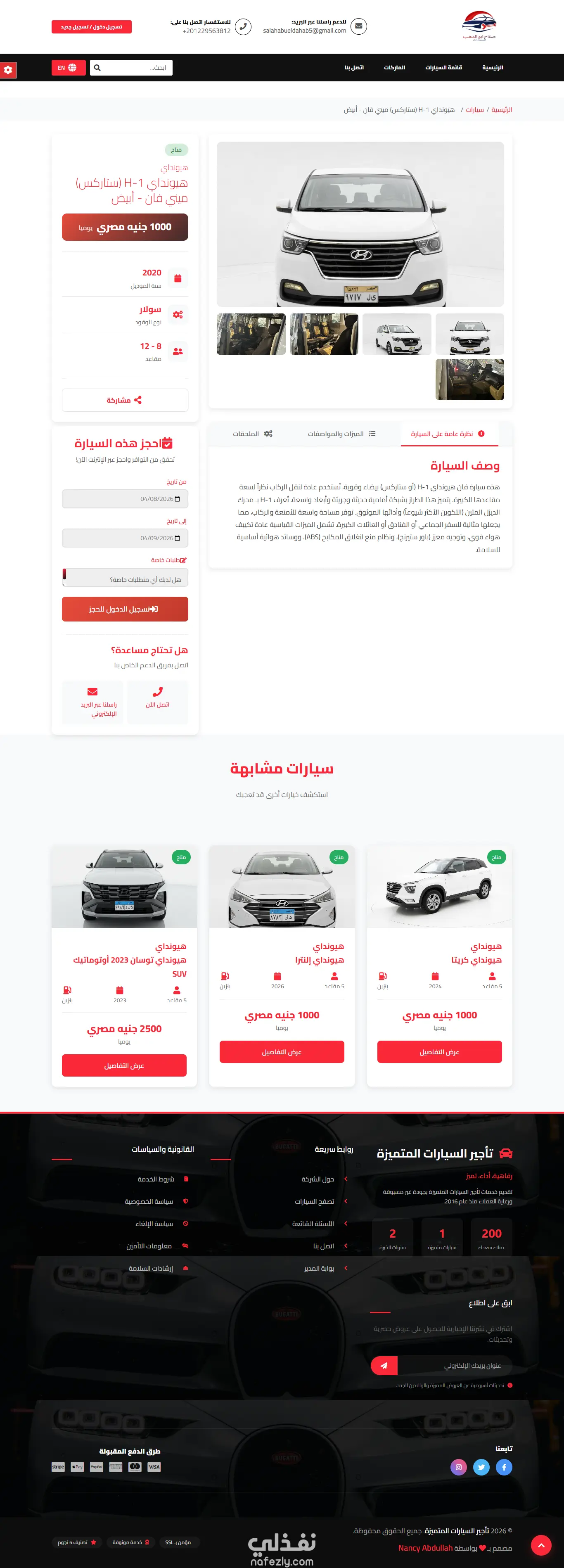 قمتُ بتصميم وتطوير موقع متكامل لتأجير السيارات يوفّر تجربة استخدام احترافية وسلسة للعملاء. يضم الموقع قائمة مميّزة من السيارات الفاخرة والمتنوعة، مع عرض تفصيلي لكل سيارة يشمل الصور، المواصفات، والسعر. كما يتضمن نظام بحث متقدم يتيح للمستخدمين تصفية النتائج حسب الفئة، والسعر، ونوع السيارة، وتواريخ الحجز، مما يسهل الوصول إلى الخيار الأنسب بسرعة ودقة.