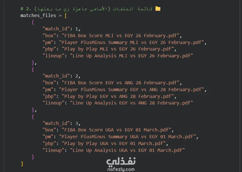 تحليل بيانات مباراتين سابقتين لكل فريق