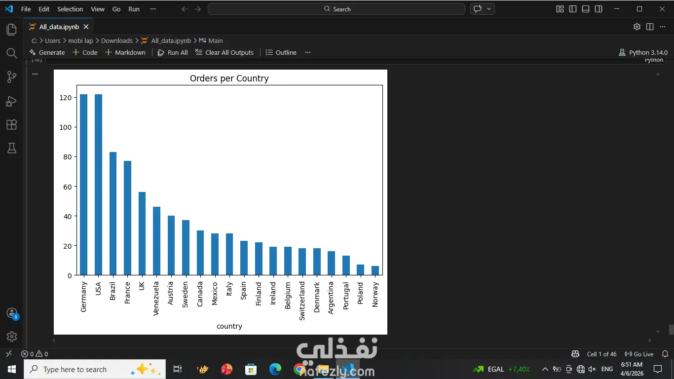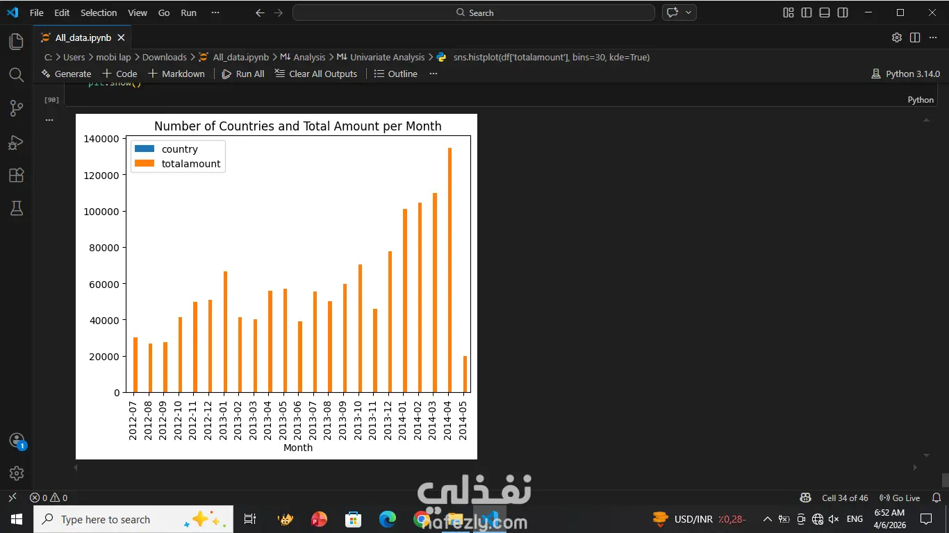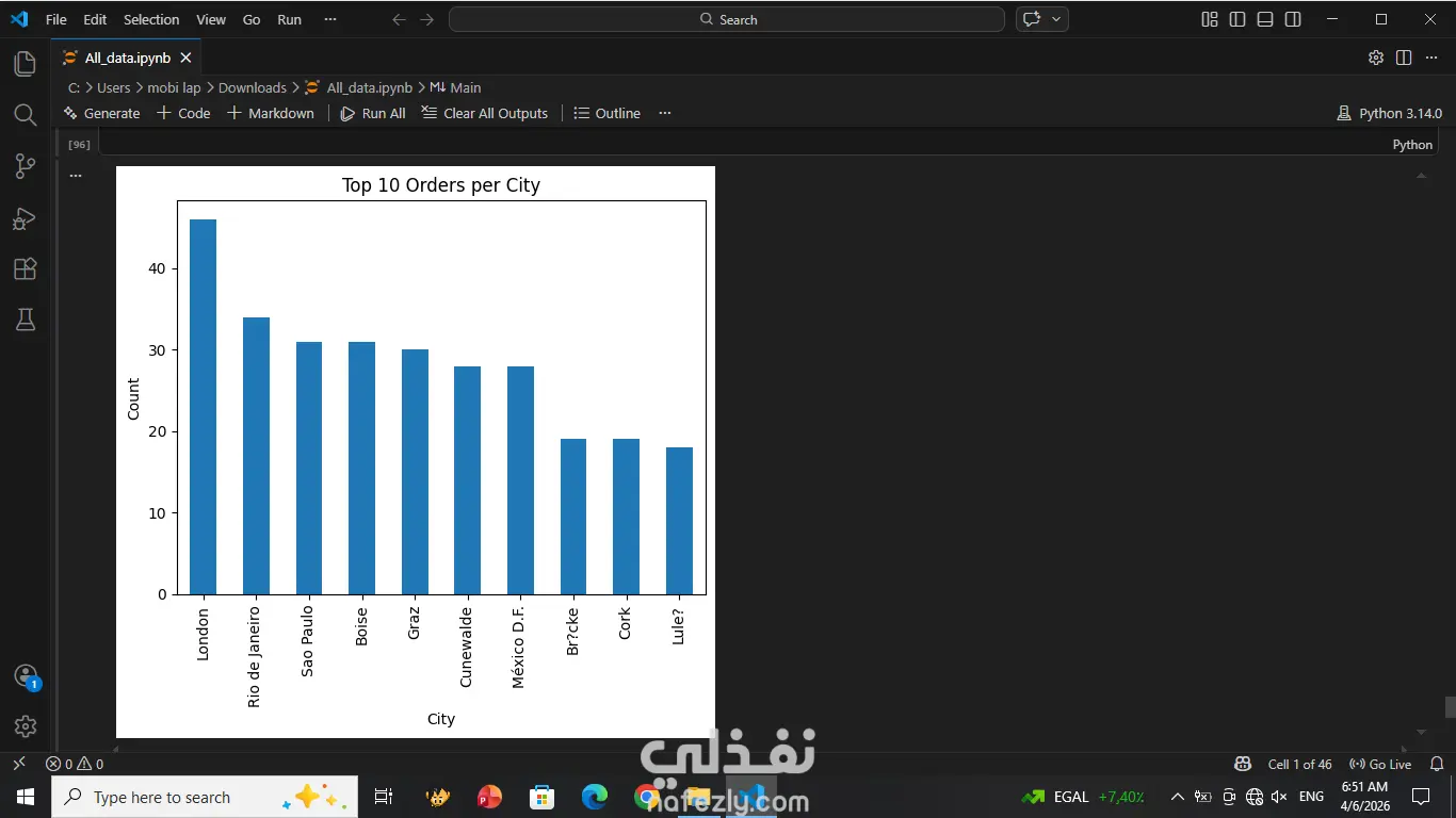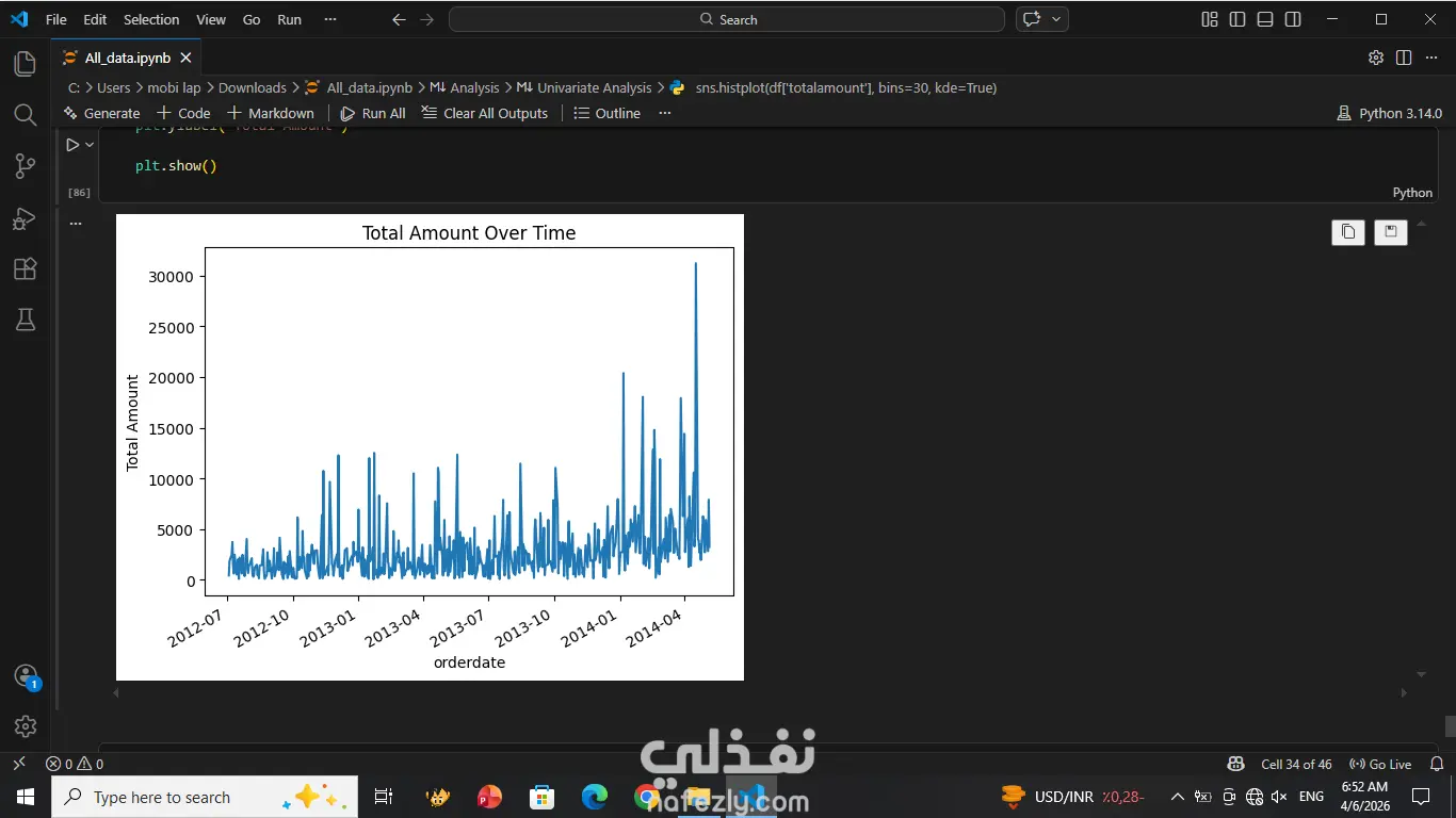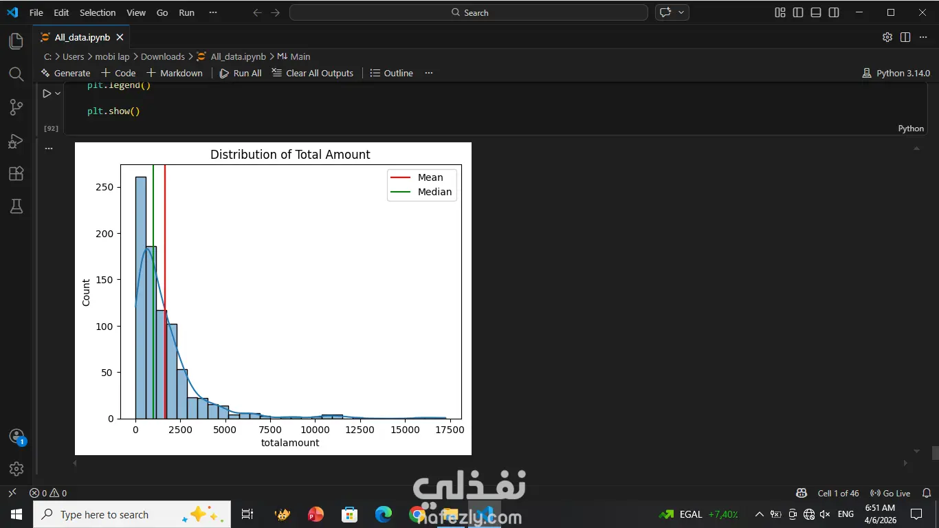 يهدف هذا المشروع إلى تحليل مجموعة من البيانات باستخدام لغة Python لاستخراج معلومات قيمة تساعد في فهم الأنماط والاتجاهات المختلفة. تم التركيز على تنظيف البيانات، معالجتها، وتحليلها للوصول إلى نتائج دقيقة تدعم اتخاذ القرار. •اهداف المشروع: -تنظيف وتجهيز البيانات للتحليل -اكتشاف الأنماط والاتجاهات -تحليل العلاقات بين المتغيرات -استخراج Insights مفيدة • الادوات والتقنيات المستخدمة: -Python -Pandas -NumPy -Matplotlib / Seaborn •خطوات تنفيذ المشروع: -استيراد البيانات من ملف (CSV / Excel) -تنظيف البيانات (حذف القيم الناقصة والتكرار) -معالجة البيانات (تحويل أنواع البيانات – إنشاء أعمدة جديدة) -تحليل البيانات باستخدام Pandas -إنشاء رسوم بيانية لتوضيح النتائج -استخراج أهم النتائج والتوصيات •مميزات المشروع: -كود منظم وسهل القراءة -استخدام مكتبات قوية لتحليل البيانات -عرض بصري واضح للنتائج -إمكانية التوسع والتطوير على المشروع