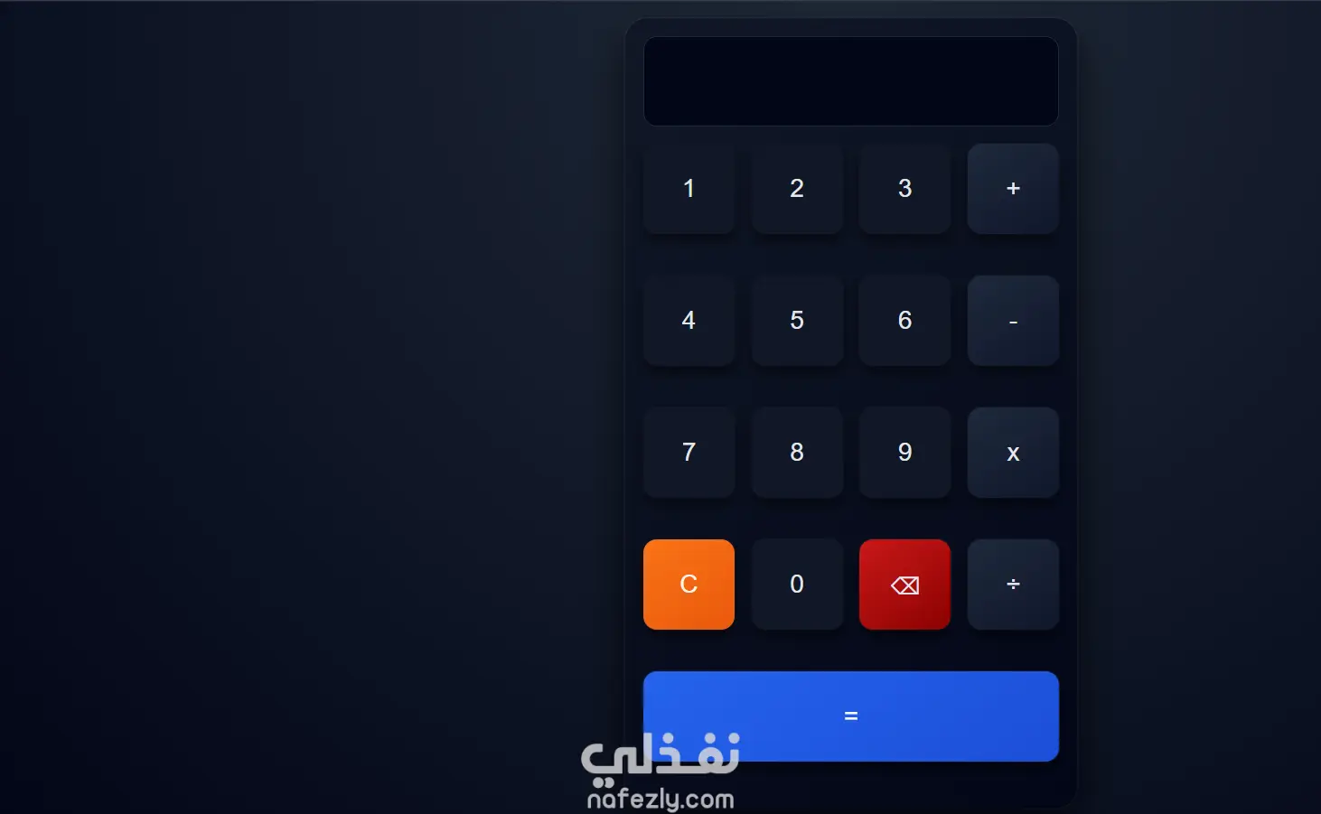 المشروع يهدف إلى تنفيذ العمليات الحسابية الأساسية من خلال تصميم أنيق وتجربة استخدام سهلة، مع واجهة مظلمة حديثة وأزرار واضحة ومنظمة.