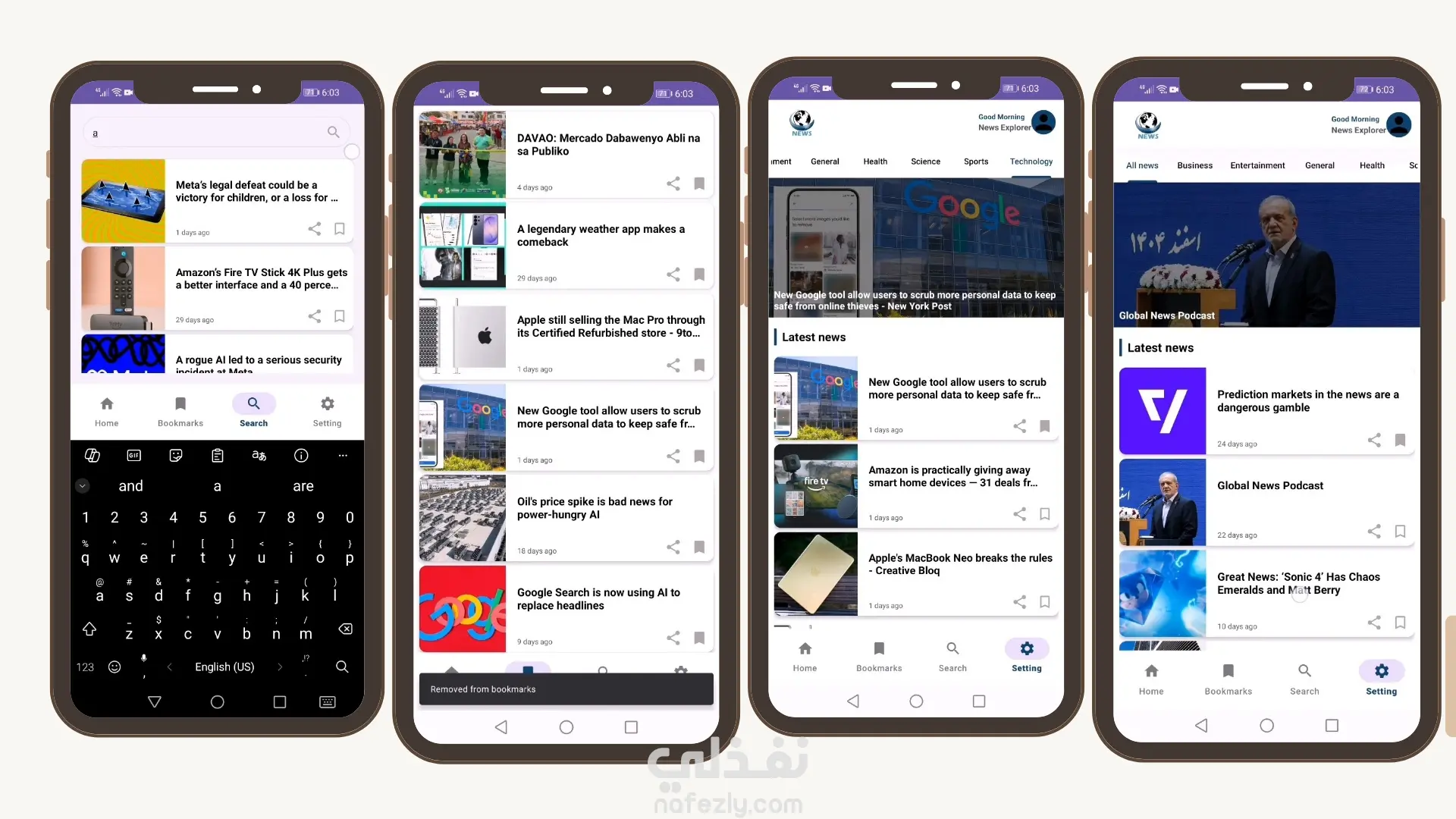تجربة تصفح أخبار سهلة ومنظمة حسب اهتمامات المستخدم.
