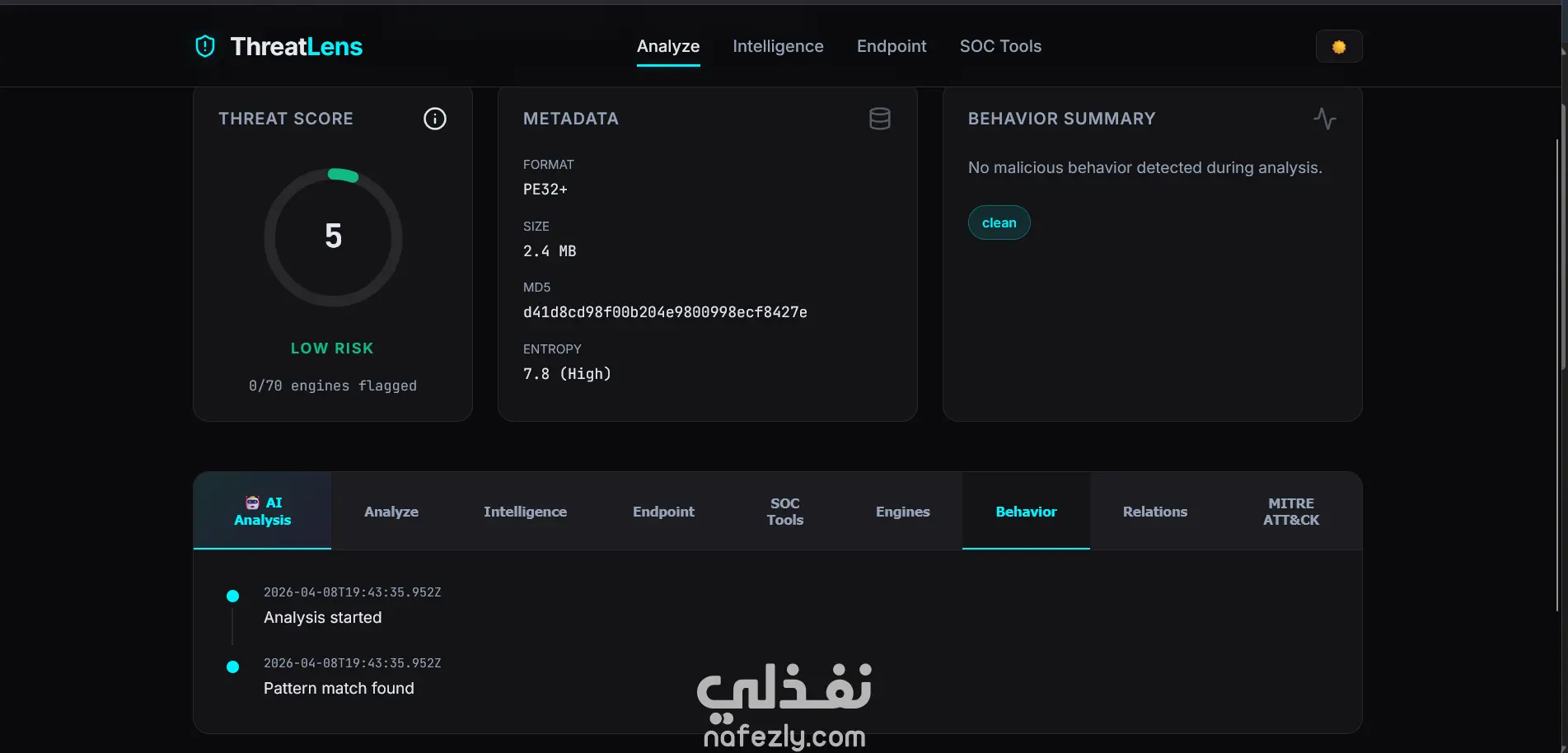 تصميم وتطوير موقع متخصص في مجال Threat Intelligence يهدف إلى تحليل وفحص الملفات والروابط المشبوهة لاكتشاف التهديدات السيبرانية. يعمل النظام بطريقة مشابهة لمنصة VirusTotal، حيث يتيح للمستخدمين رفع الملفات أو إدخال روابط لفحصها باستخدام مجموعة من محركات الكشف وتقنيات التحليل. يوفر الموقع تقارير تفصيلية تتضمن معلومات عن سلوك الملفات، التوقيعات الرقمية، الاتصالات الشبكية، ومستوى الخطورة، مما يساعد المستخدمين ومحللي الأمن السيبراني على اتخاذ قرارات سريعة ودقيقة. كما يعتمد على تقنيات التحليل الساكن (Static Analysis) والتحليل الديناميكي (Dynamic Analysis) داخل بيئة آمنة (Sandbox). يركز النظام على تقديم واجهة سهلة الاستخدام مع أداء سريع ودقة عالية في اكتشاف التهديدات، بالإضافة إلى إمكانية دمج مصادر Threat Intelligence خارجية لتحسين نتائج الفحص. الهدف من المشروع هو توفير منصة موثوقة تساعد في الكشف المبكر عن البرمجيات الخبيثة وتعزيز مستوى الأمان الرقمي للمستخدمين.