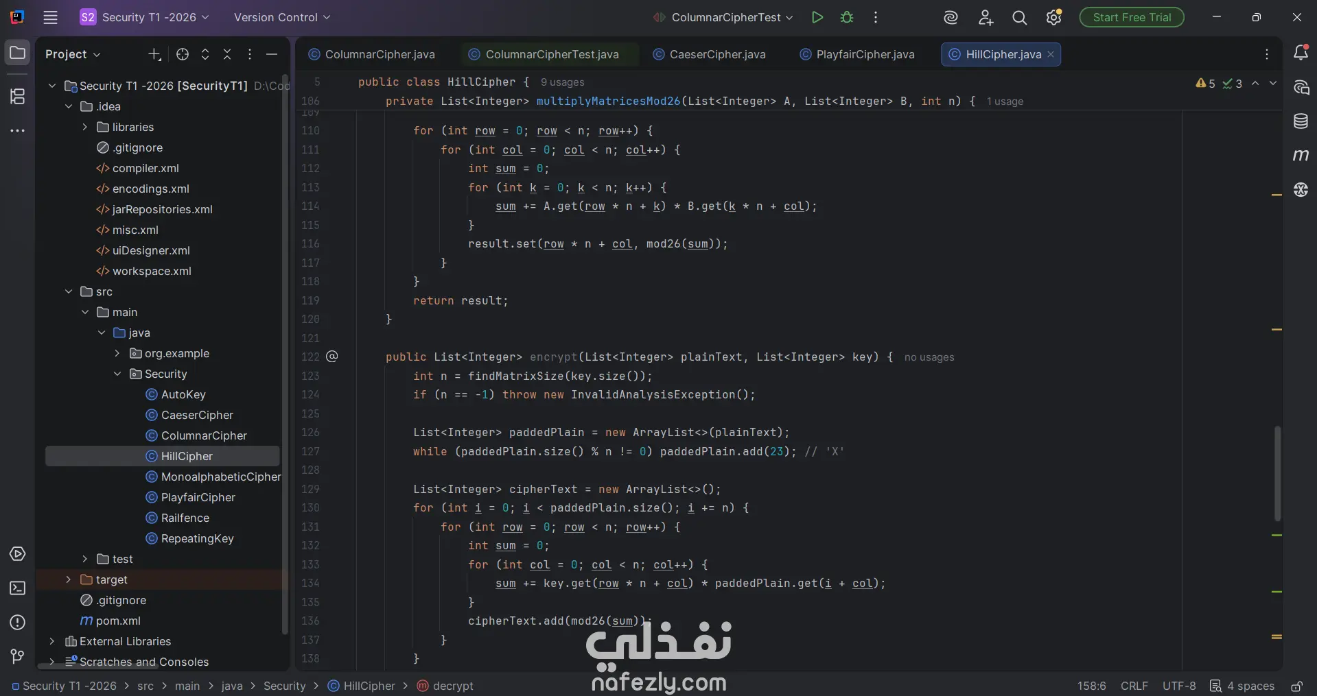This project is a comprehensive Java-based framework implementing the most significant classical encryption algorithms and their corresponding "attack" vectors. It demonstrates the evolution of cryptography from simple letter substitution to complex matrix-based transformations.