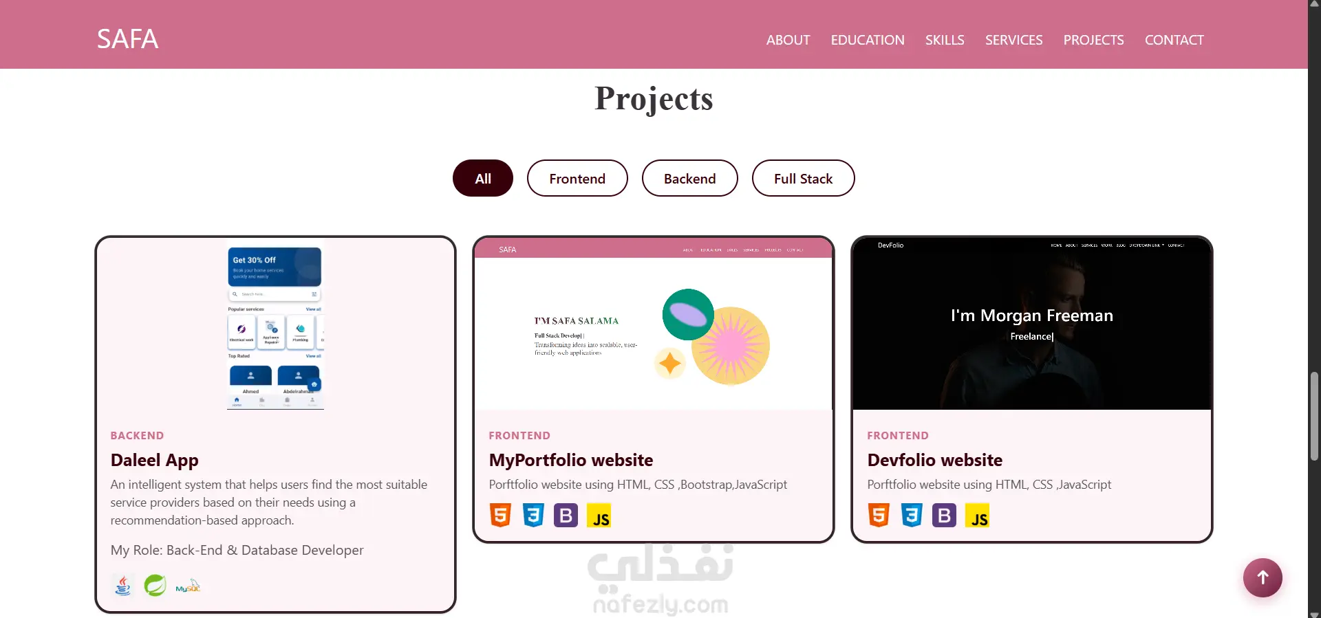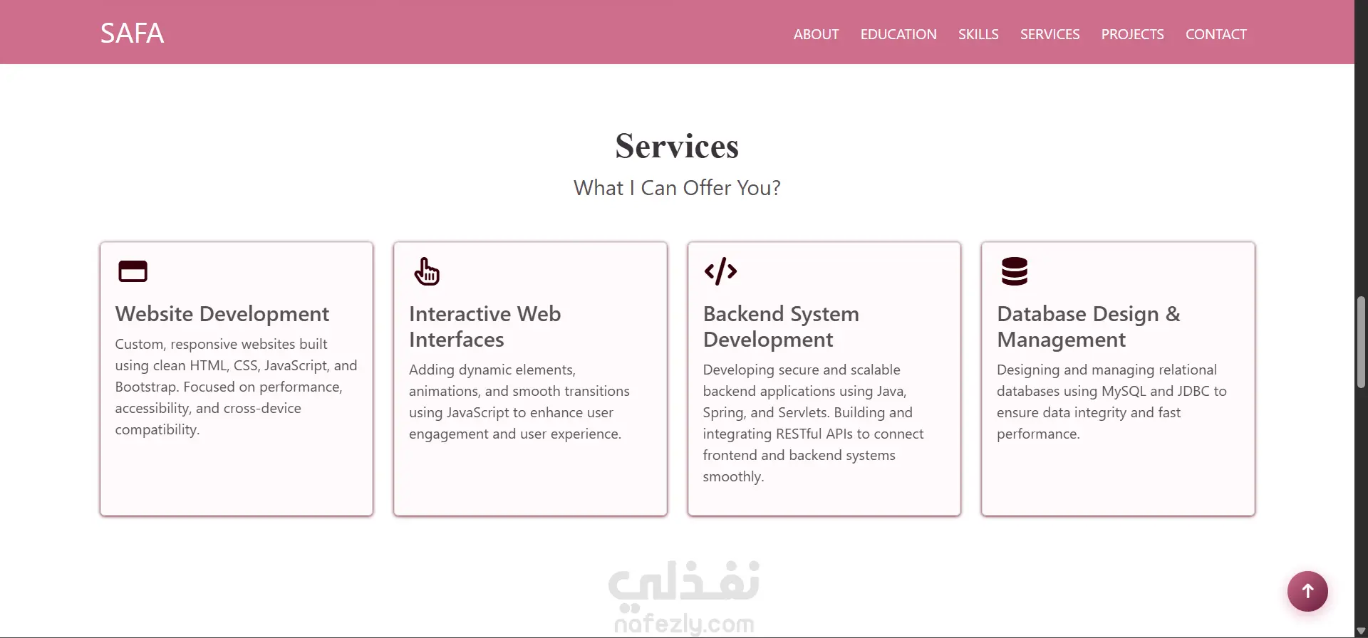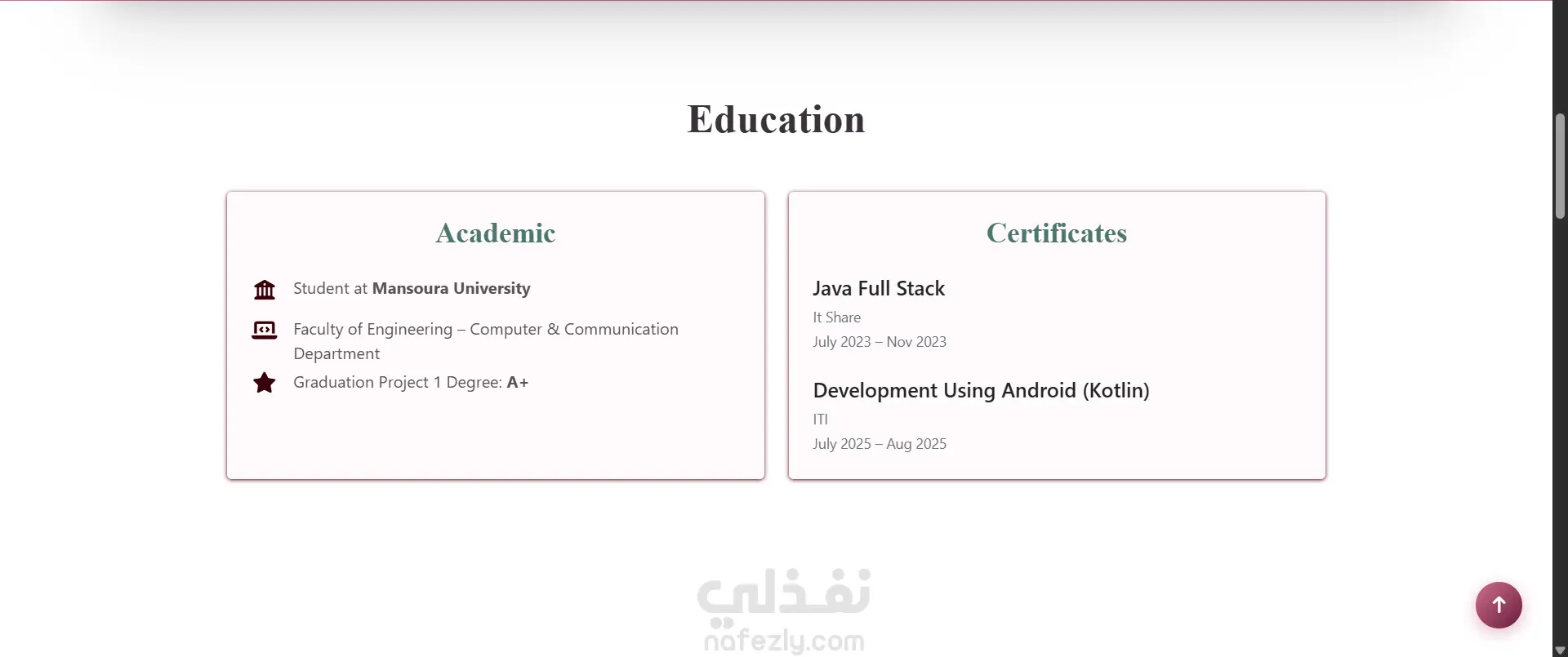 موقع مصمم ليعكس الهوية البصرية والمهارات التقنية لمطوري البرمجيات. يتميز الموقع بتصميم عصري، متجاوب (Responsive)، وواجهة مستخدم (UI) جذابة تهدف إلى استعراض المهارات، الخبرات الأكاديمية، والمشاريع البرمجية بشكل منظم يسهل على أصحاب العمل والعملاء الوصول للمعلومات.