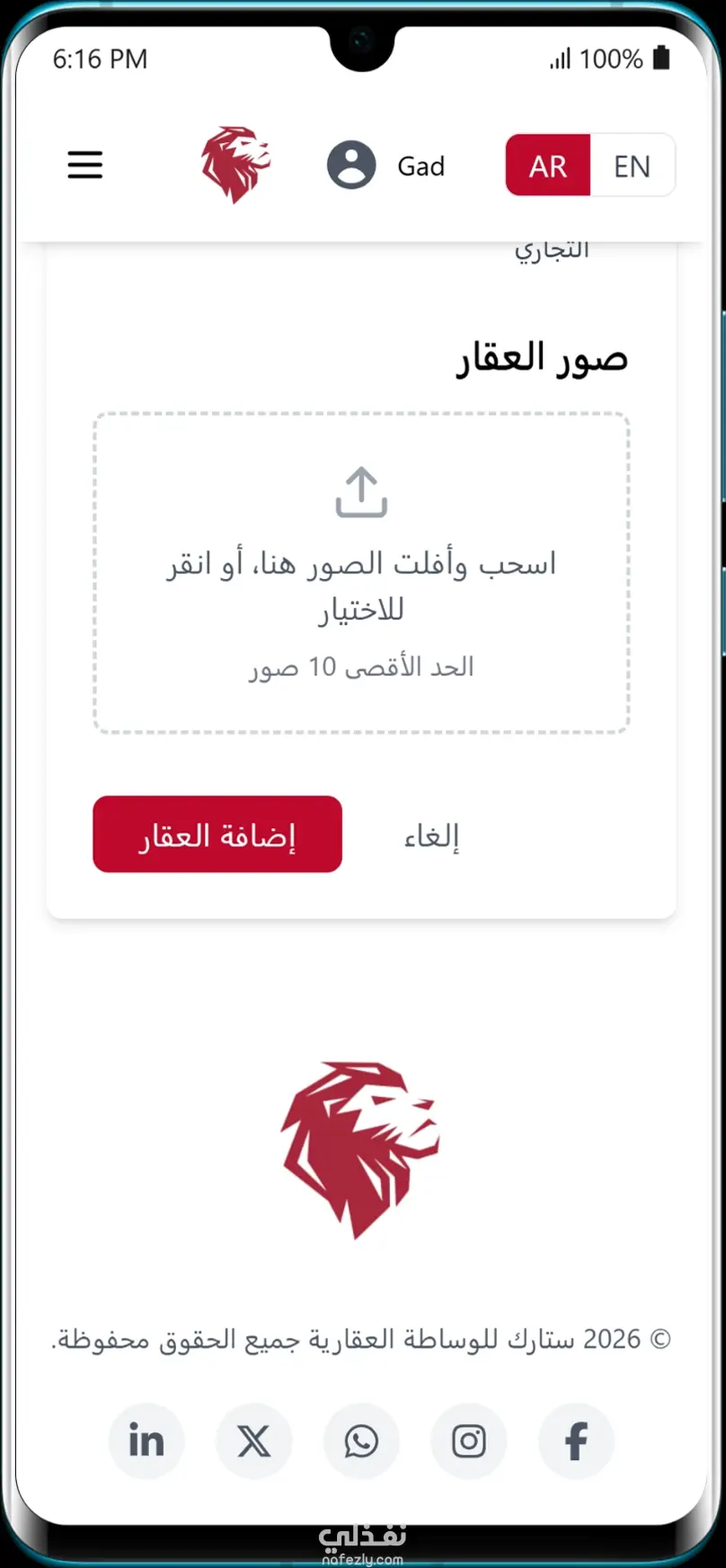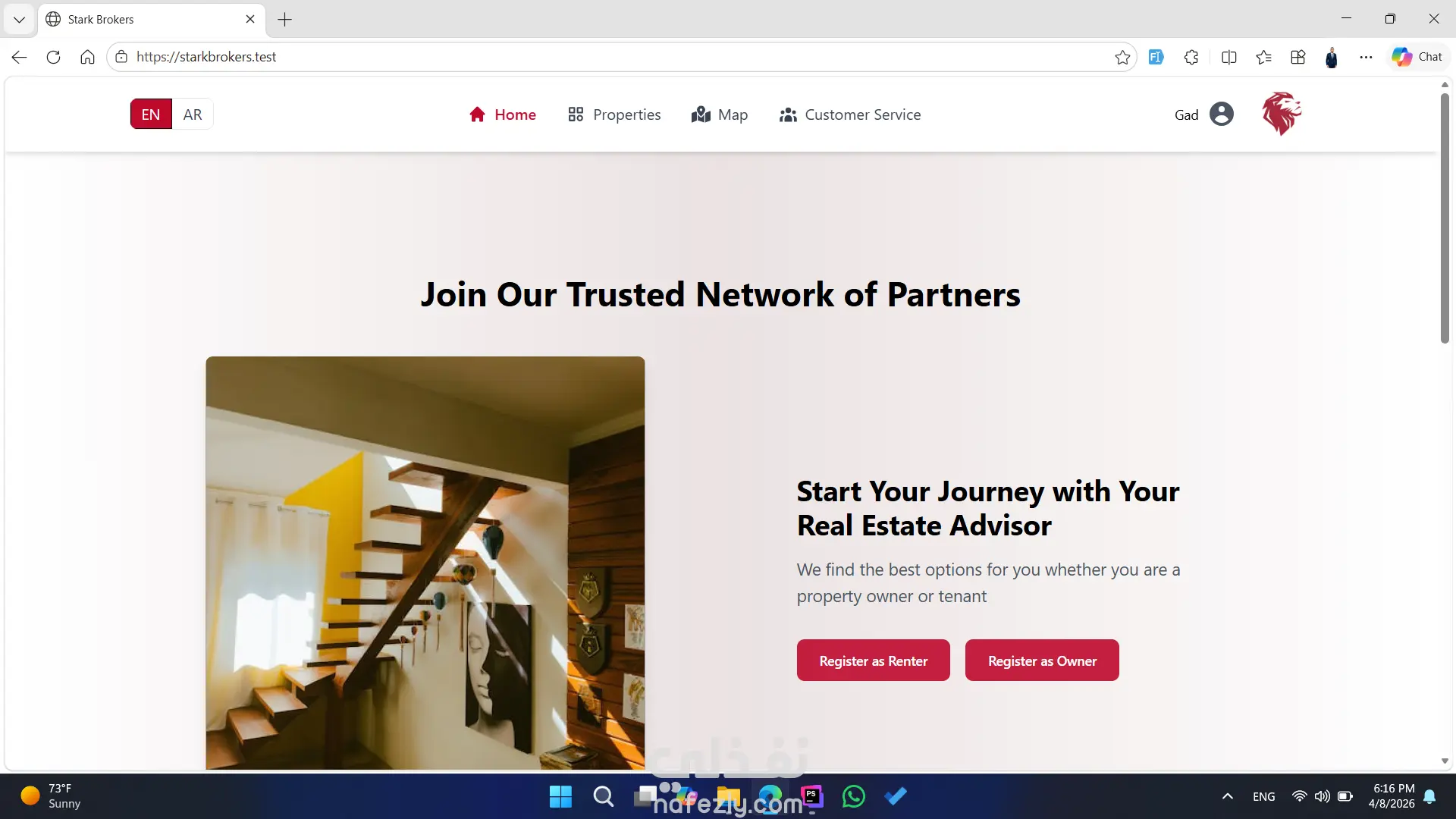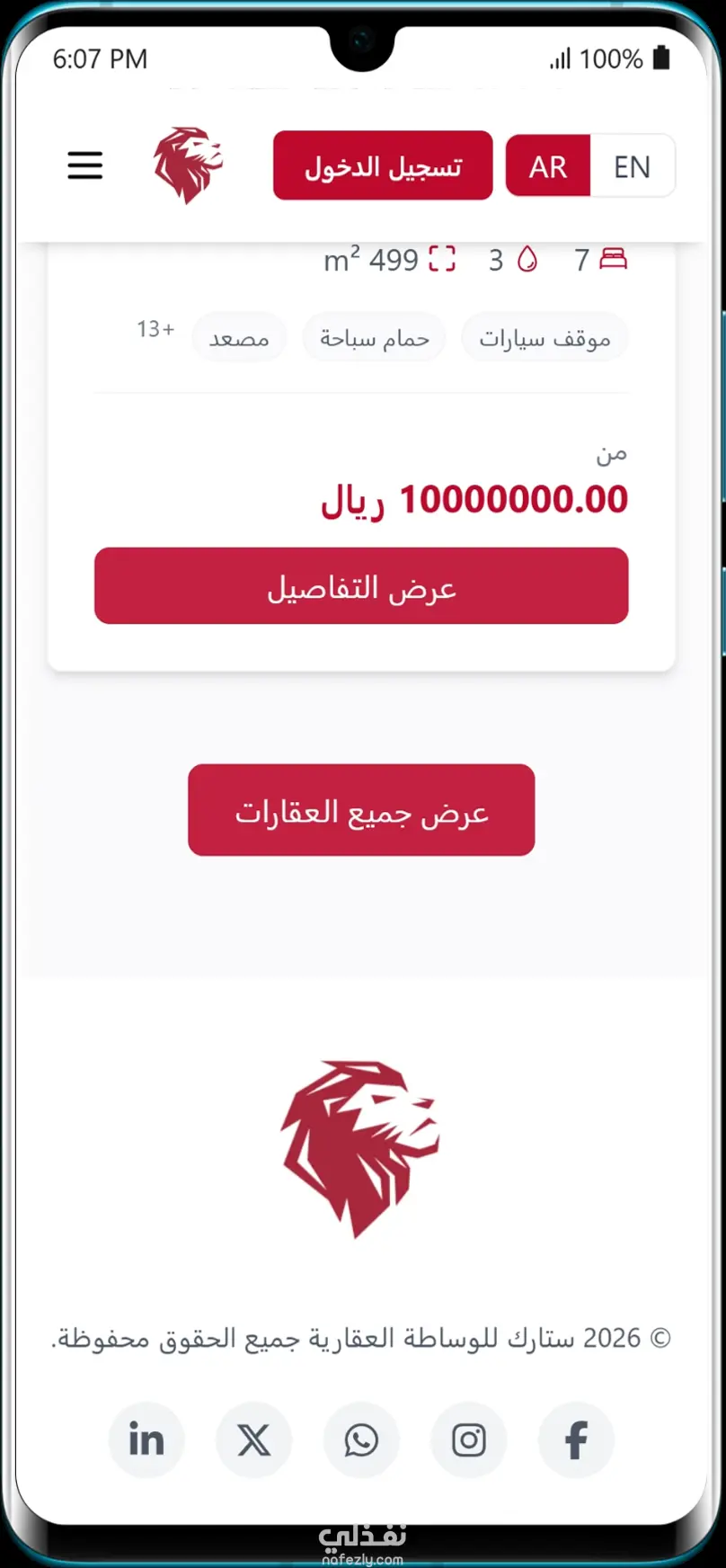 منصة عقارات متكاملة معمولة باستخدام Laravel 11 مع React SPA، ومصممة بشكل منظم (Service-Oriented Architecture) عشان تكون قابلة للتوسع وسهلة الصيانة.
