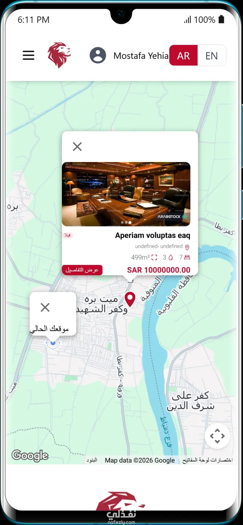 عرض تفاصيل العقار مع خريطة (Google Maps)