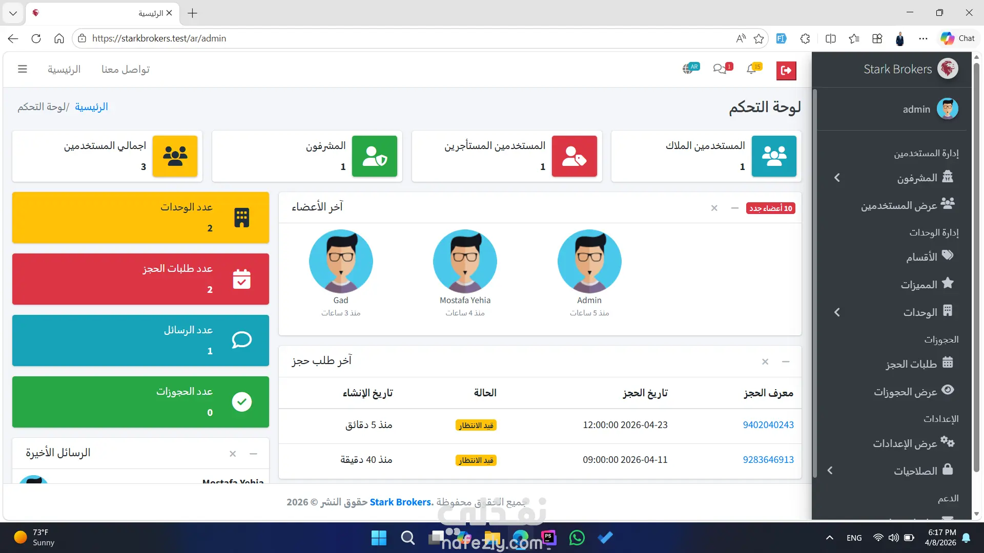 إدارة الحساب الشخصي (للمستأجر والمالك)