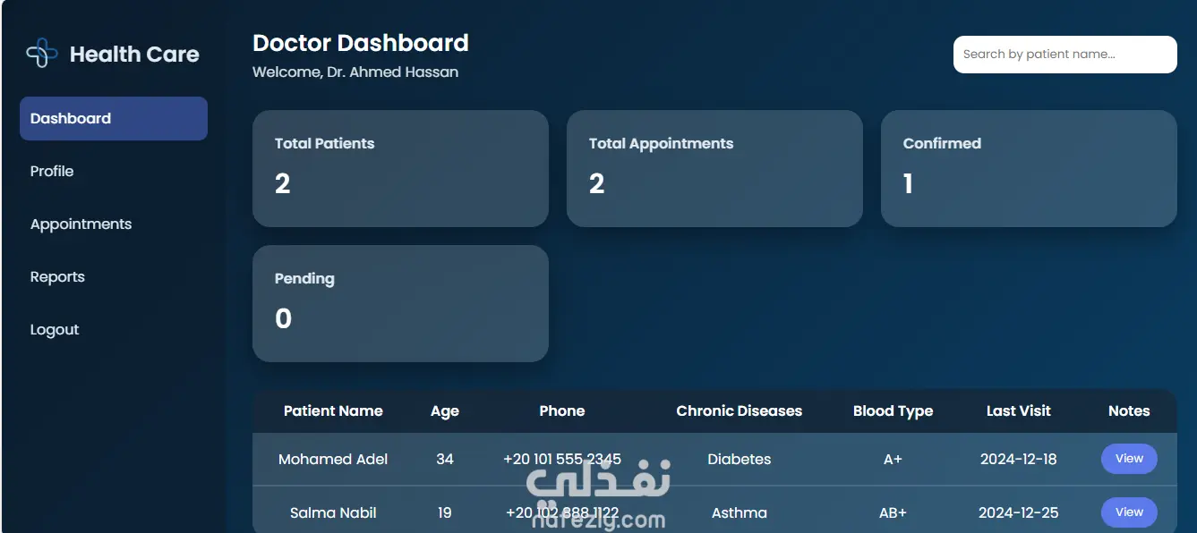 تصميم وتطوير موقع لادارة العيادات الطبيه وحجز المواعيد متكامل