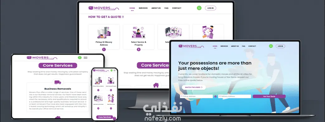 موقع الكتروني في اسكتلندا للنقل الداخلي وجميع مدن المملكة المتحدة للنقل لمسافات طويلة.