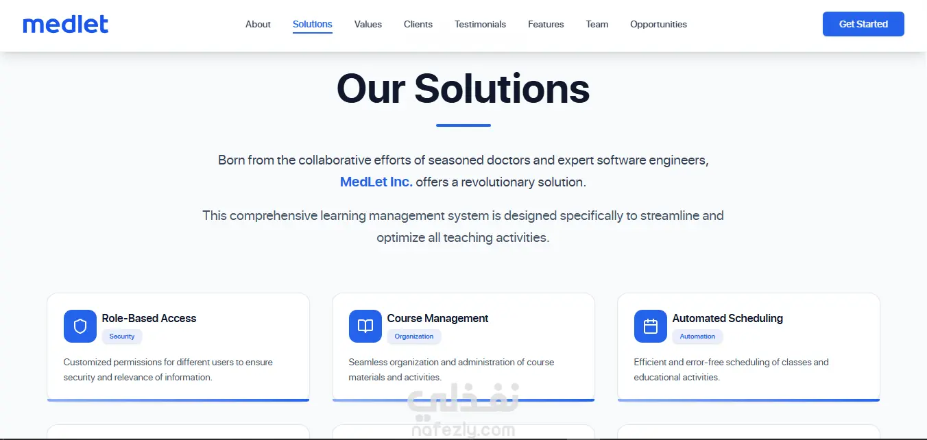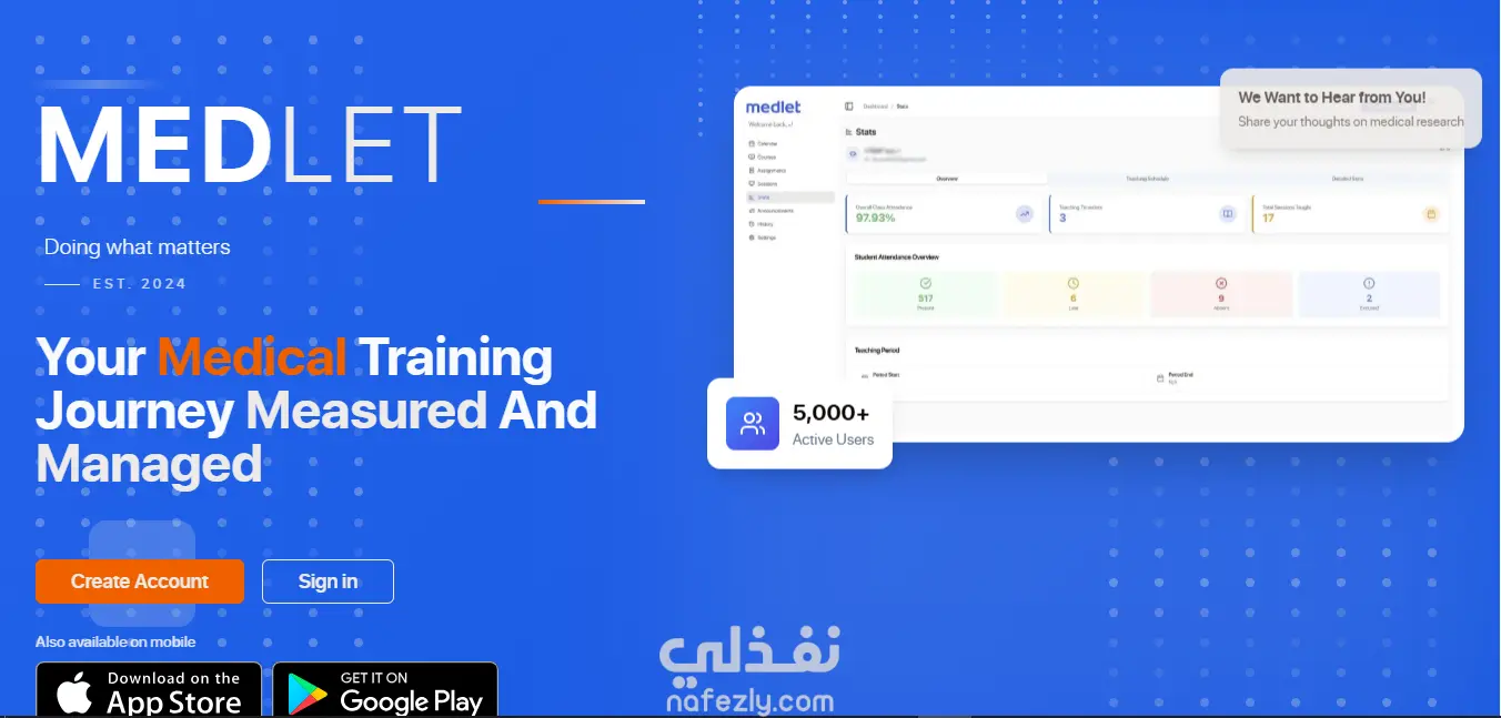Medlet هي منصة رقمية متخصصة في إدارة التعليم والتدريب الطبي، تهدف إلى تسهيل وتنظيم الرحلة التعليمية للطلاب والأطباء والمدرّبين داخل المؤسسات الطبية والجامعات. توفر المنصة نظامًا متكاملًا لإدارة الدورات، الحضور، التقييمات، الجداول، السجل السريري (Logbook)، التواصل الداخلي، والتقارير التحليلية، مما يساعد على تقليل الأعمال الإدارية الروتينية وتحسين كفاءة العملية التعليمية. كما تتيح للطلاب إنشاء ملف رقمي موثق لأنشطتهم وخبراتهم التدريبية، مع دعم فرص التدريب، الفعاليات الطبية، والتواصل الأكاديمي والمهني ضمن بيئة موحدة وسهلة الاستخدام.