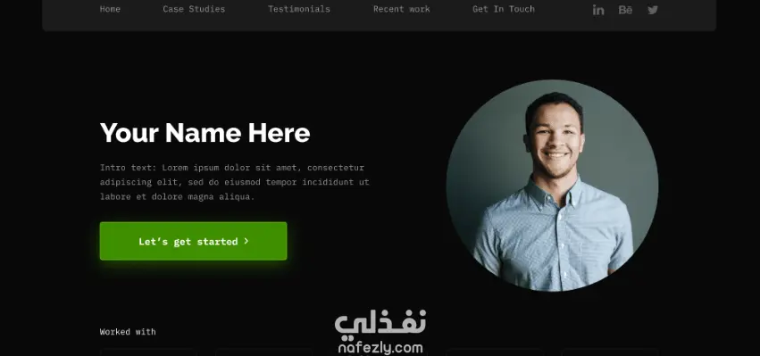 عناصر التفاعل: دمج أزرار واضحة لطلب الفعل (Call to Action) مثل "Let’s get started" و "Know more".
