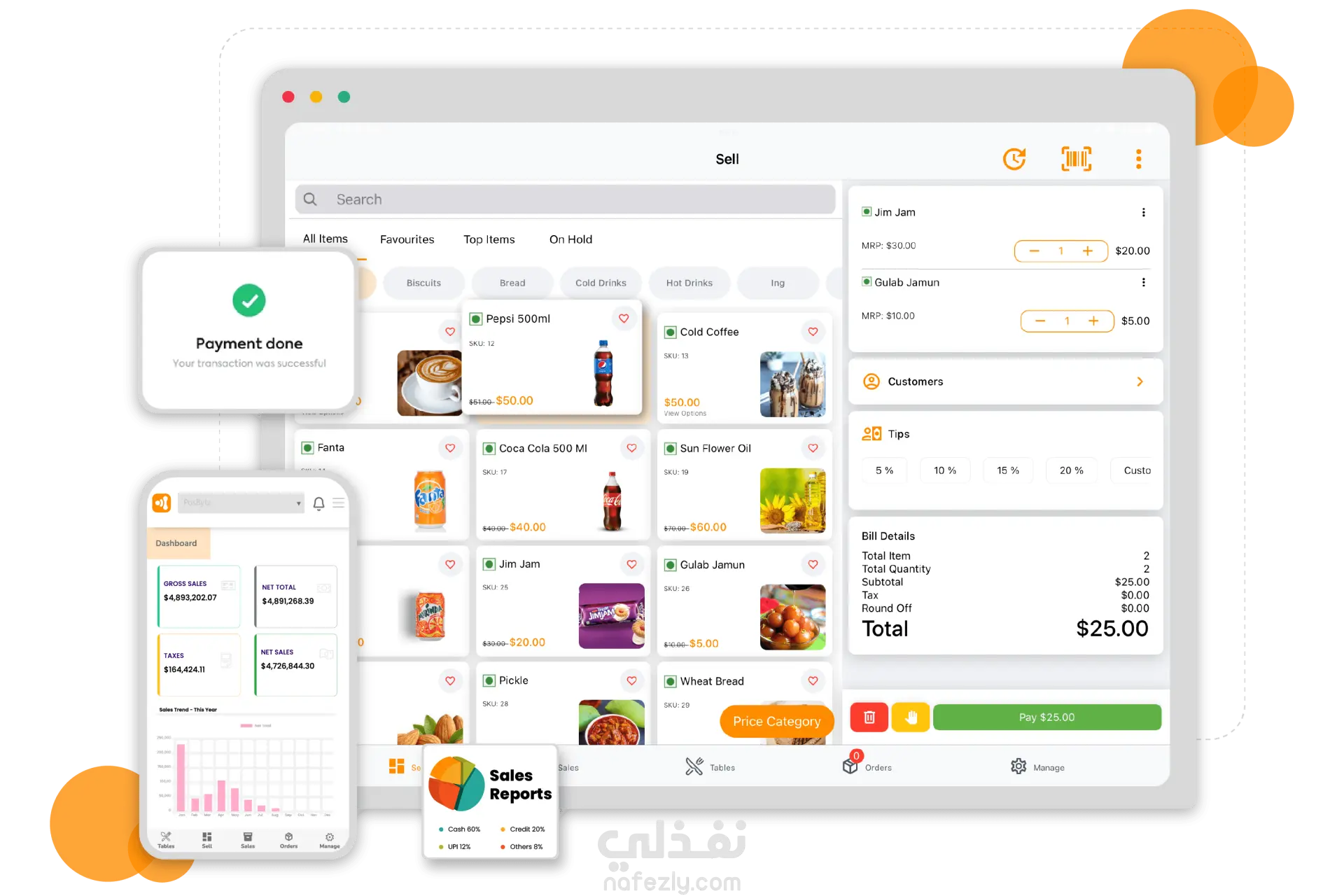 الحمدلله تم تصميم واجهة مستخدم حديثة لنظام إدارة مبيعات (POS) ولوحة تحكم (Dashboard) بأسلوب احترافي وبسيط. ركزت في التصميم على: تجربة مستخدم سهلة وسريعة عرض المنتجات بشكل منظم وجذاب وضوح عمليات الدفع والفواتير تصميم متجاوب مناسب للموبايل والتابلت استخدام ألوان مريحة مع لمسة عصرية الهدف من التصميم هو تسهيل إدارة المبيعات وتحسين تجربة المستخدم سواء للكاشير أو صاحب المشروع. ممكن تنفيذ التصميم كـ Web Application كامل باستخدام React و Node.js عند الطلب.