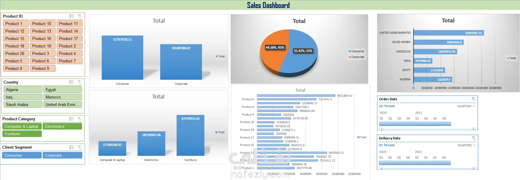 تقرير مبيعات و ربحية تفاعلى باستخدام ُExcel Dashboard