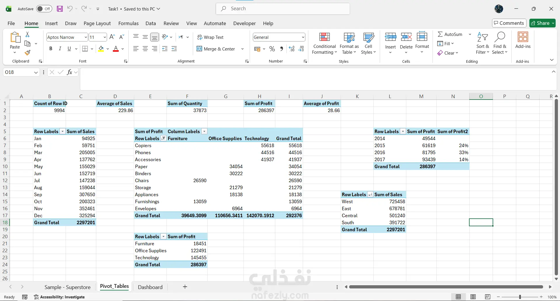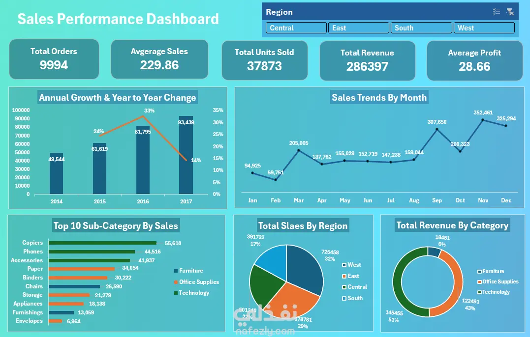 تحليل أداء المبيعات وبناء لوحة تحكم تفاعلية - Excel