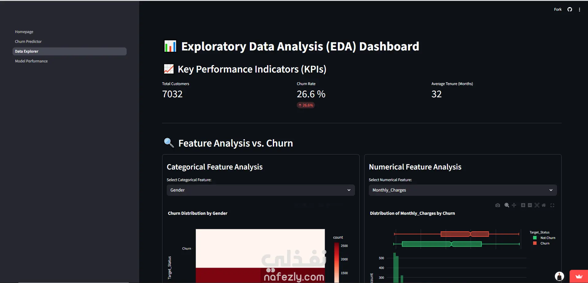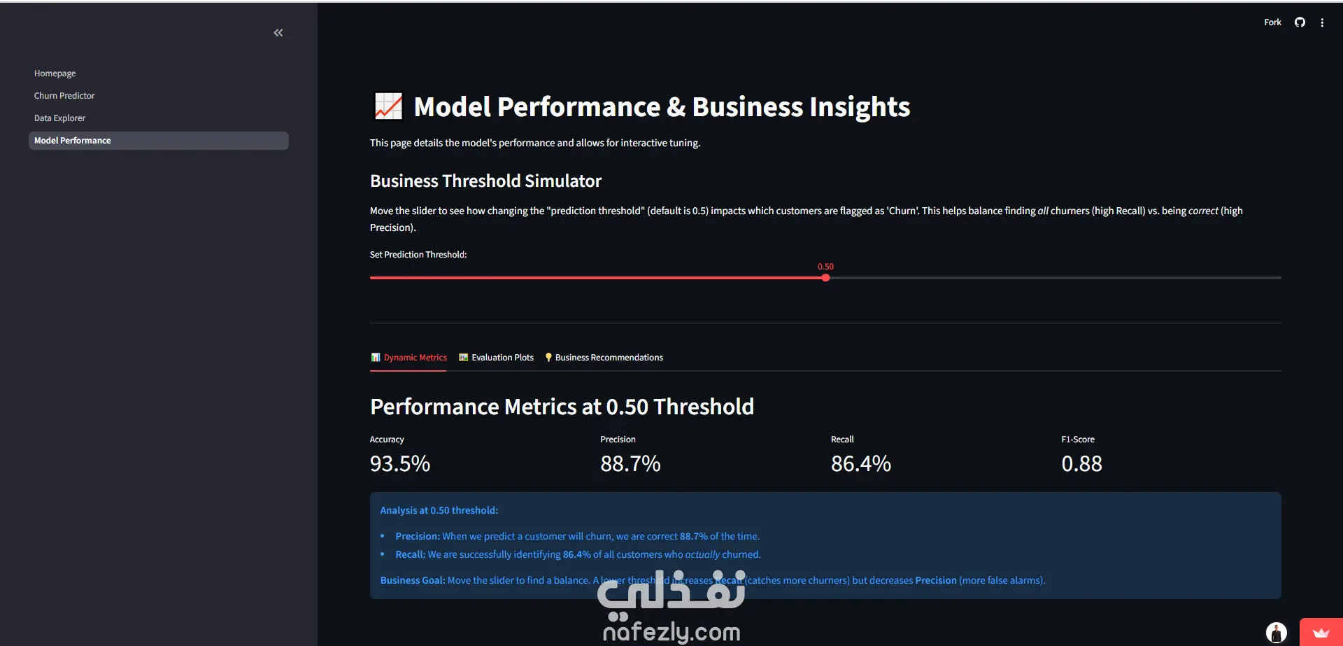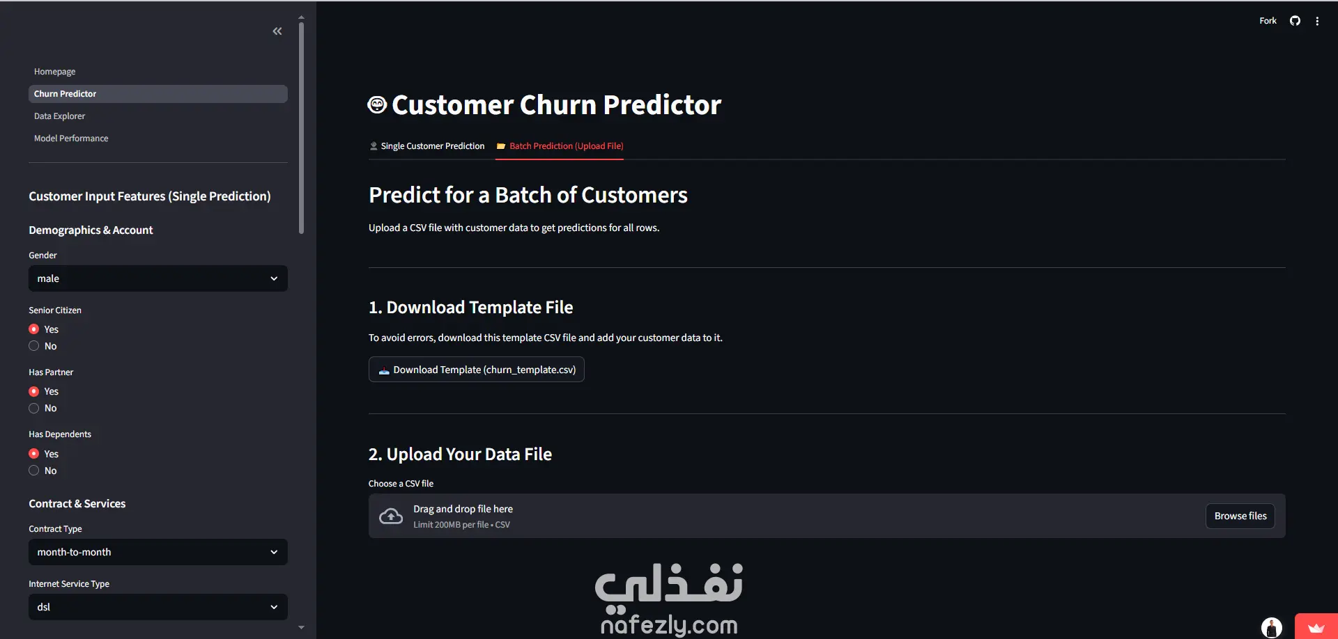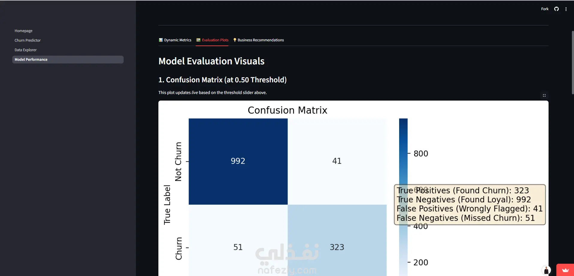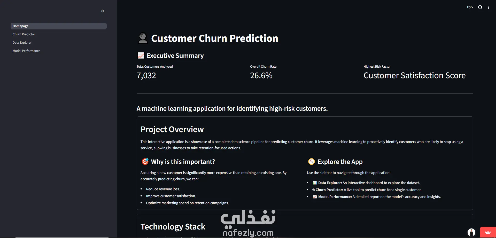 في عالم الأعمال اليوم، الحفاظ على العميل الحالي أقل تكلفة بكثير من اكتساب عميل جديد. قمت بتطوير نظام متكامل (End-to-End Solution) يعتمد على خوارزميات تعلم الآلة (Machine Learning) لمساعدة الشركات على التنبؤ بالعملاء المحتمل مغادرتهم (Churners) قبل حدوث ذلك، مما يتيح للشركة اتخاذ إجراءات استباقية للحفاظ عليهم. تم تحويل النموذج الرياضي المعقد إلى تطبيق ويب تفاعلي واحترافي باستخدام إطار عمل Streamlit، ليتمكن متخذو القرار (غير التقنيين) من استخدامه بسهولة. * المميزات الرئيسية للنظام: 1. لوحة تحكم تنفيذية (Executive Dashboard): -عرض حي لمؤشرات الأداء الرئيسية (KPIs) مثل معدل الهجر الإجمالي. -تحديد تلقائي لأكثر العوامل خطورة (Highest Risk Factors) التي تدفع العملاء للمغادرة. 2. محرك التنبؤ بالذكاء الاصطناعي (AI Prediction Engine): -تنبؤ فردي (Single Prediction): إمكانية إدخال بيانات عميل واحد والحصول على التنبؤ فوراً مع "بروفايل 360 درجة" للعميل. -تفسير القرار (Explainable AI): النظام لا يعطي النتيجة فقط، بل يوضح "لماذا" تم تصنيف هذا العميل كخطر (مثلاً: بسبب نوع العقد أو الفاتورة المرتفعة). -تنبؤ جماعي (Batch Processing): إمكانية رفع ملفات Excel/CSV ضخمة لآلاف العملاء، ويقوم النظام بمعالجتها وإخراج تقرير جاهز بالتوقعات. 3. نظام دعم القرار الاستراتيجي (Strategic Decision Support): -ميزة محاكاة المخاطر (Threshold Simulator): أداة تفاعلية تمكن الإدارة من الموازنة بين الدقة (Precision) والمرونة (Recall) بناءً على ميزانية التسويق المتاحة. -تحليل البيانات الاستكشافي (Interactive EDA): رسوم بيانية تفاعلية (Heatmaps & Histograms) لفهم سلوك العملاء وتوزيعهم. 4. تجربة مستخدم احترافية (Professional UI/UX): -واجهة عصرية تدعم الـ Dark/Light Mode. -نظام حماية من الأخطاء (Templates) عند رفع الملفات. -تنبيهات تفاعلية (Toasts & Spinners) لضمان تجربة سلسة. *التقنيات والأدوات المستخدمة: Languange: Python Web Framework: Streamlit (مع تخصيص CSS متقدم). Machine Learning: Scikit-Learn, XGBoost, Joblib. Data Processing: Pandas, NumPy. Visualization: Plotly Interactive Charts. Deployment: Streamlit Community Cloud (CI/CD via GitHub). *القيمة المضافة (Business Value): هذا المشروع ليس مجرد تحليل بيانات، بل هو أداة تساعد الشركات على: -تقليل الخسائر المالية الناتجة عن فقدان العملاء. -توجيه ميزانية التسويق بدقة للعملاء الأكثر خطورة فقط. -فهم الأسباب الجذرية لمشاكل العملاء (Root Cause Analysis).