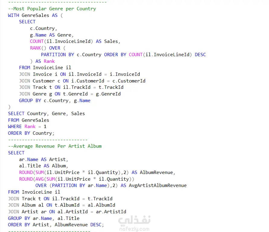 تحليل بيانات متجر موسيقى رقمي باستخدام SQL المتقدم