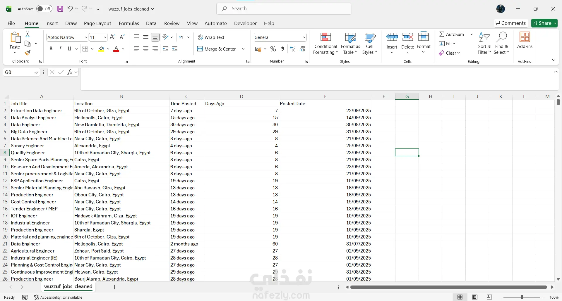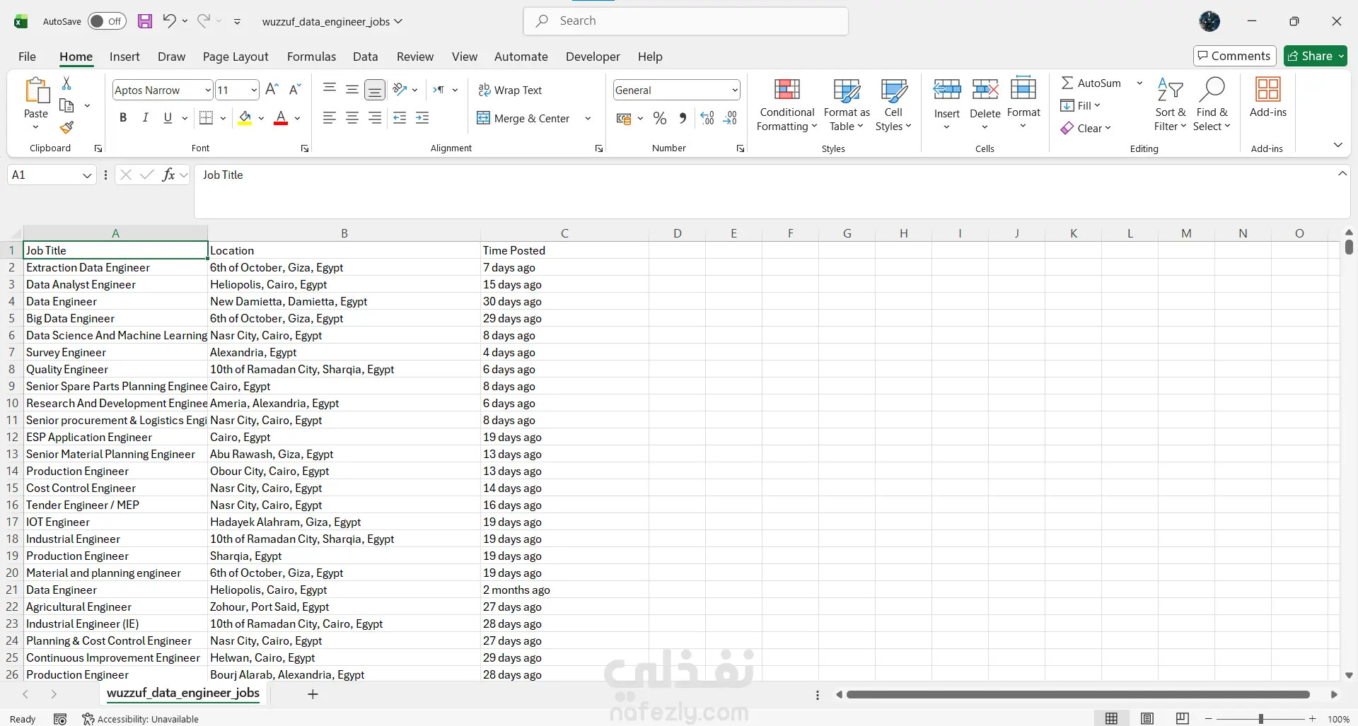 استخراج ومعالجة بيانات الوظائف من Wuzzuf باستخدام Web Scraping