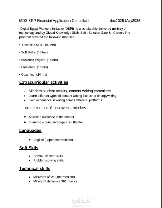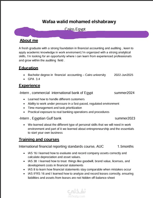 مرحبا انا وفاء وليد أقوم بكتابة سيرة ذاتية بطريقة احترافية و أنا تعلمت كتابة سيرة ذاتية من منصة محترفة