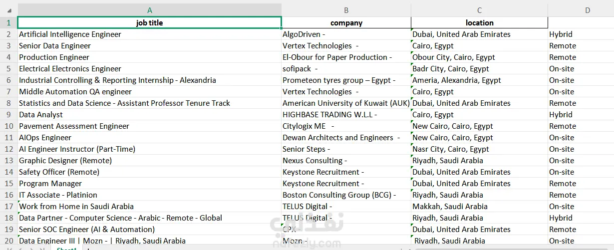 أداة استخراج وتحليل بيانات الوظائف (Web Scraping) من موقع Wuzzuf