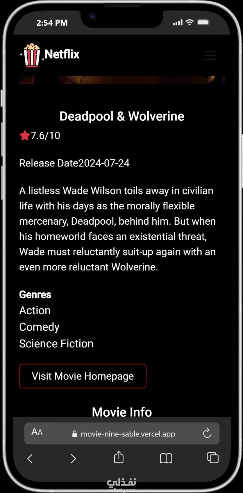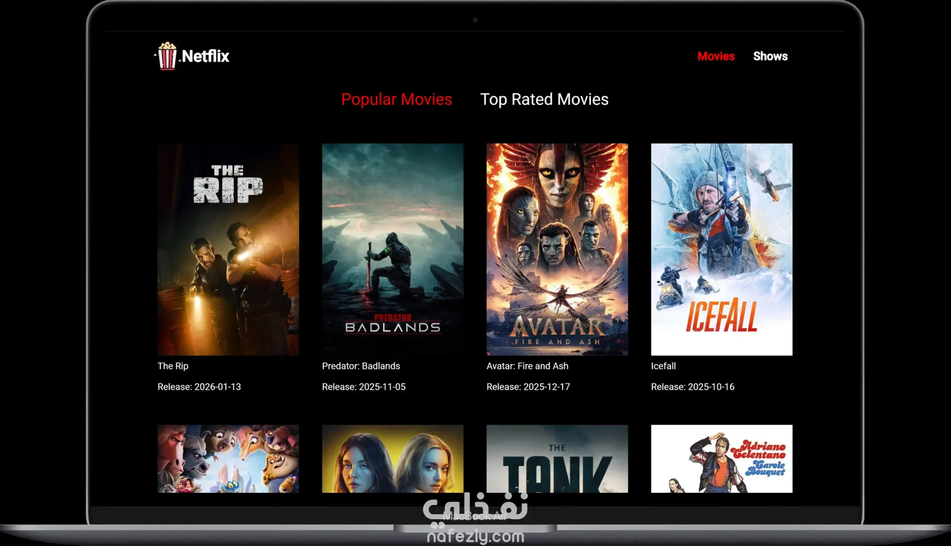 قمت بتطوير موقع عرض أفلام احترافي (Movie Web App) يشبه منصات مثل Netflix، يتيح للمستخدمين تصفح أحدث الأفلام والمسلسلات بسهولة من خلال واجهة مستخدم سريعة وجذابة. يعتمد المشروع على استهلاك API خارجي لعرض بيانات حقيقية مثل الأفلام الشائعة (Popular)، الأعلى تقييمًا (Top Rated)، وبرامج التلفزيون، مع تنظيم المحتوى بشكل ديناميكي وسهل الاستخدام. أهم المميزات: عرض الأفلام حسب التصنيفات (Popular - Top Rated - TV Shows) واجهة مستخدم حديثة وسريعة (Responsive Design) استدعاء بيانات ديناميكية من API Lazy Loading لتحسين الأداء Navigation سلس بين الصفحات تصميم مشابه لتجربة المستخدم في منصات Streaming الكبيرة التقنيات المستخدمة: Angular TypeScript REST API Integration RxJS HTML / CSS / Tailwind الهدف من المشروع هو تقديم تجربة مستخدم احترافية مع أداء عالي وتنظيم واضح للبيانات، مما يجعله قابل للتطوير إلى منصة Streaming كاملة.