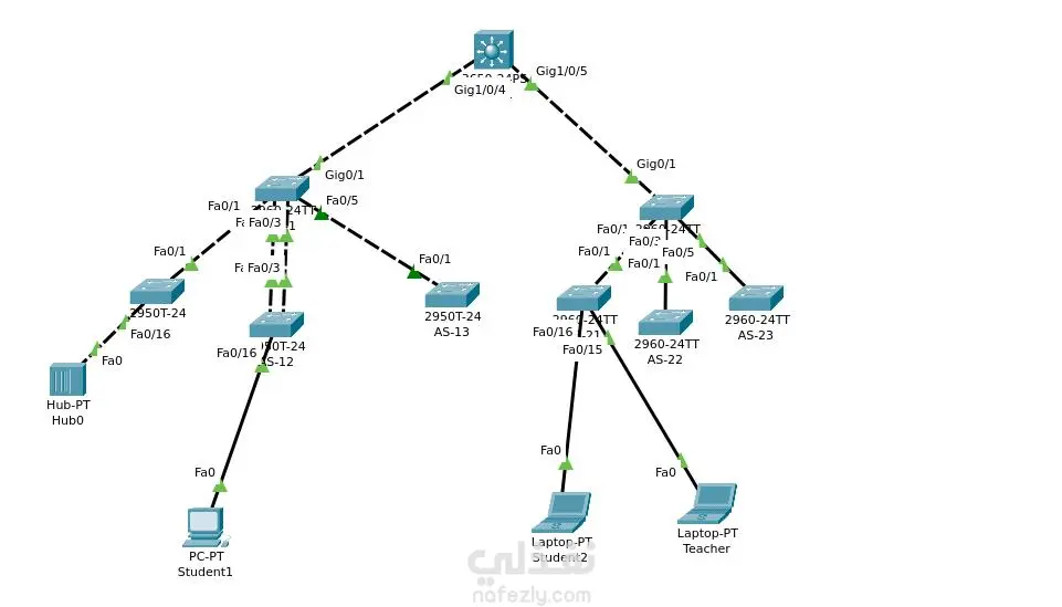 تصميم شبكة LAN كاملة باستخدام Cisco Packet Tracer مع VLAN و Routing