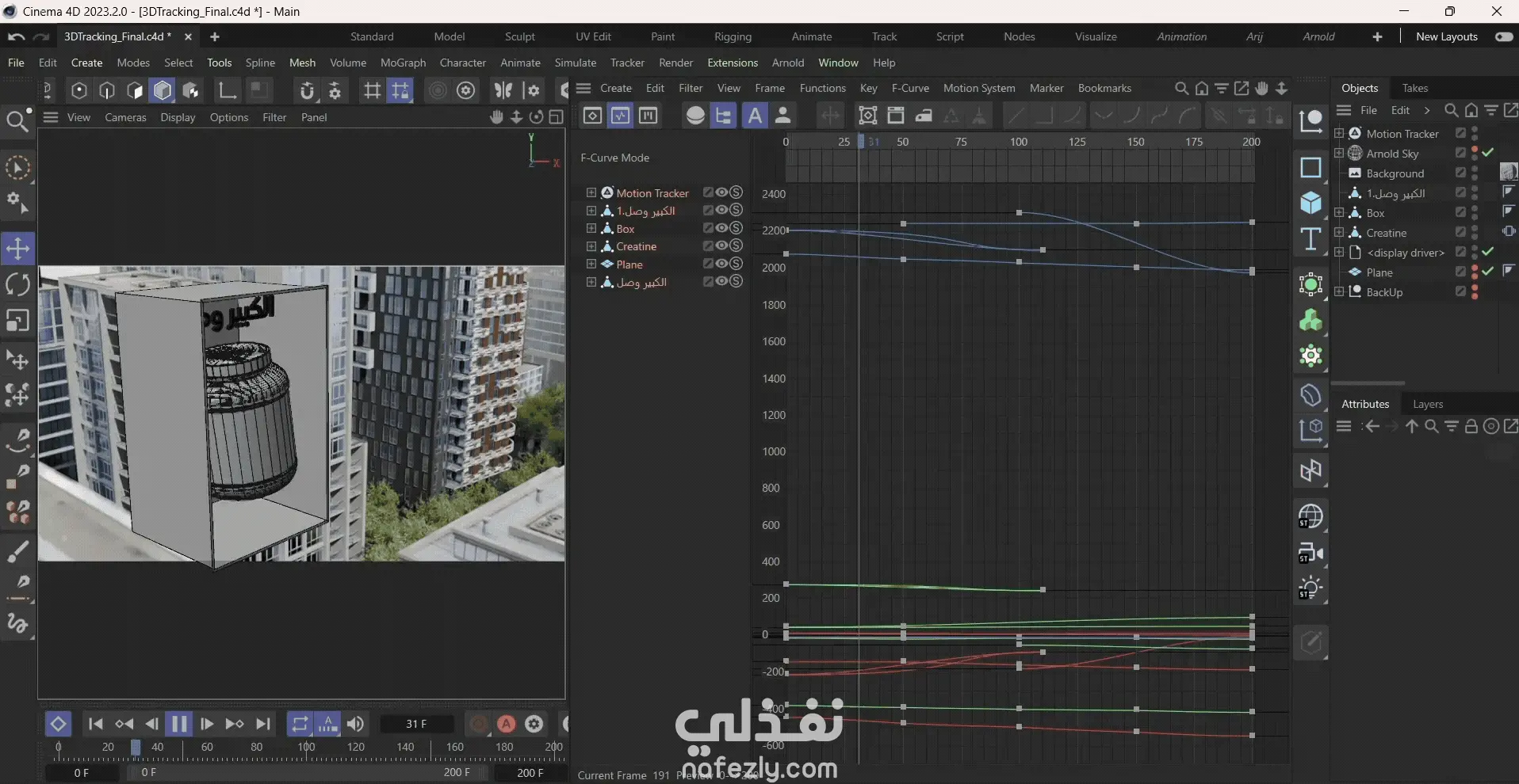 - عن المشروع :- هذا العمل عبارة عن إعلان CGI لمنتج مكمل غذائي (Creatine)، يعتمد على دمج عنصر ثلاثي الأبعاد (المنتج) داخل فيديو حقيقي (Live Footage) للحصول على نتيجة بصرية واقعية وجذابة. - هدف المشروع :- يهدف المشروع إلى تقديم المنتج بشكل احترافي داخل بيئة حقيقية، مما يعزز من مصداقيته ويجعل الإعلان أكثر قربًا من الجمهور، مع الحفاظ على جودة إخراج سينمائية. - خطوات تنفيذ المشروع :- تحليل الفيديو الحقيقي وتحديد زوايا الكاميرا عمل Camera Tracking للمشهد تصميم المنتج ثلاثي الأبعاد وتحريكه إعداد الخامات والإضاءة لتتطابق مع البيئة الحقيقية إخراج الريندر (Render Passes) تجميع الريندر (Render Assembly & Compositing) دمج المنتج داخل المشهد وضبط الألوان (Color Matching & Grading) إضافة الظلال والانعكاسات لتحقيق الواقعية إضافة المؤثرات الصوتية والموسيقى باستخدام (SFX & Music) إخراج العمل النهائي (Final Render) - الأدوات المستخدمة :- Cinema 4D (تصميم وتحريك المنتج) Adobe After Effects (Compositing, Tracking & Render Assembly) Adobe Photoshop (تحسين العناصر البصرية) Adobe Audition (Sound Design, SFX & Music Editing)