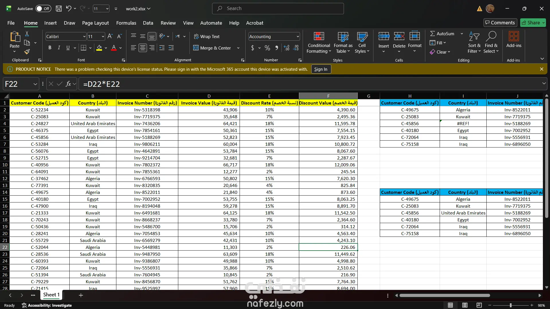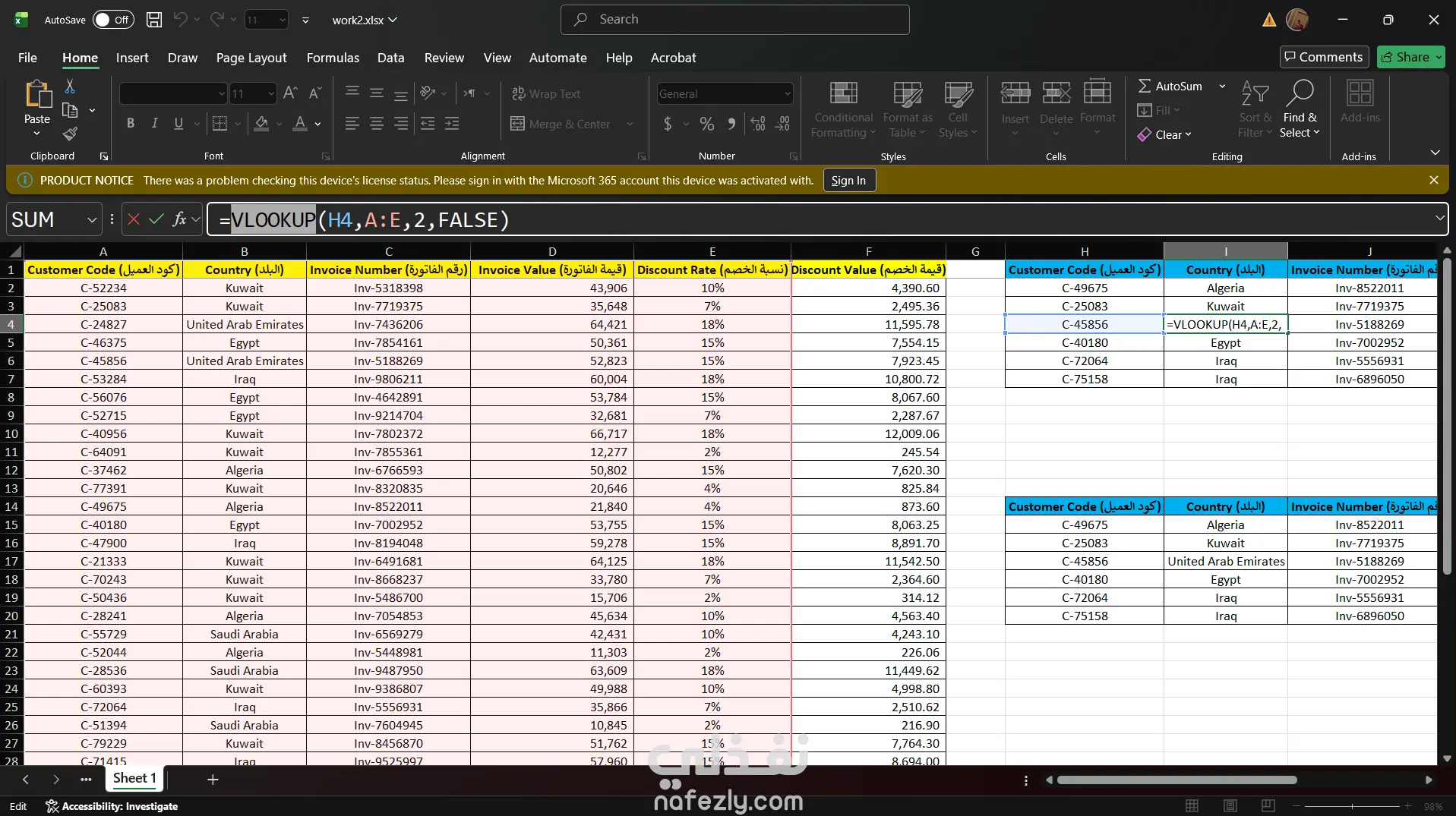 تنظيم بيانات المبيعات باستخدام دوال Excel (VLOOKUP والجمع والضرب)