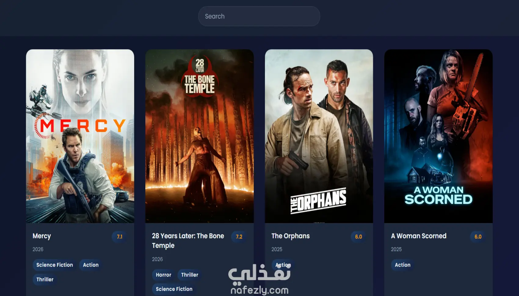 أقدم خدمة تصميم وتطوير موقع أفلام احترافي بواجهة حديثة مستوحاة من أشهر منصات عرض الأفلام العالمية، مع تجربة مستخدم سلسة وسريعة الاستجابة (Responsive Design) تعمل بكفاءة على جميع الأجهزة (موبايل - تابلت - كمبيوتر). تم تصميم الموقع ليكون جذاب بصريًا وسهل الاستخدام مع التركيز على تحسين تجربة التصفح للمستخدم. يشمل الموقع المميزات التالية: صفحة رئيسية لعرض أحدث وأشهر الأفلام نظام تصنيفات للأفلام (Action - Horror -Sci-Fi - وغيرها) عرض تقييم الفيلم وسنة الإصدار شريط بحث احترافي وسريع تصميم Dark Mode عصري واجهة مستخدم حديثة وسهلة التنقل أداء سريع وتحسين في سرعة التحميل تم استخدام أحدث تقنيات تطوير الويب لضمان كود منظم، سريع، وقابل للتطوير أو إضافة مميزات مستقبلية بسهولة. كما يمكن تخصيص المشروع حسب احتياجات العميل سواء في التصميم أو الخصائص أو الإضافات الخاصة.