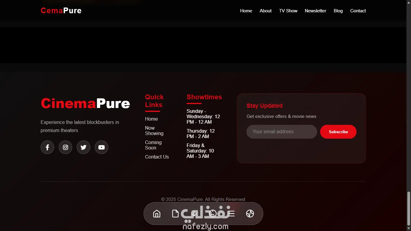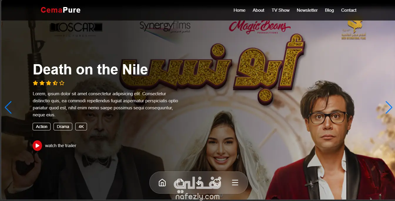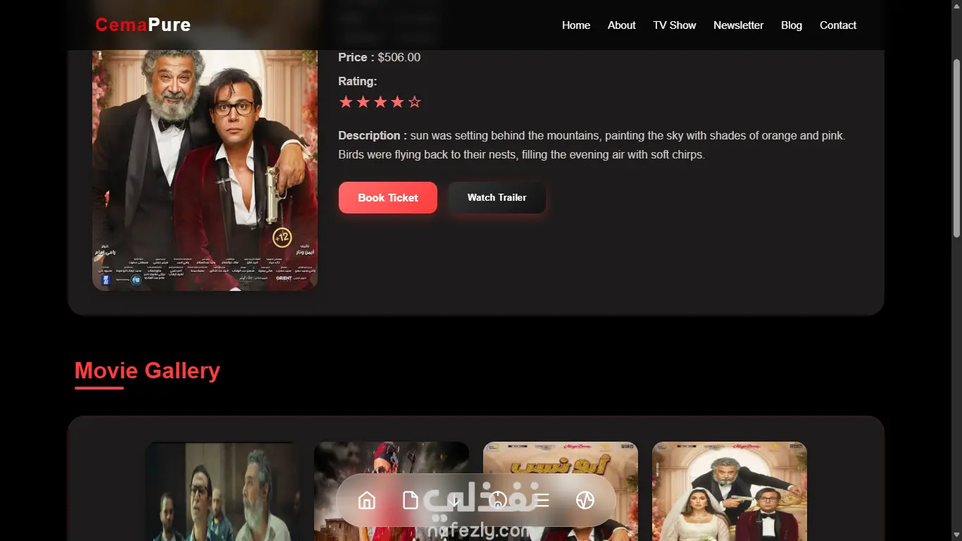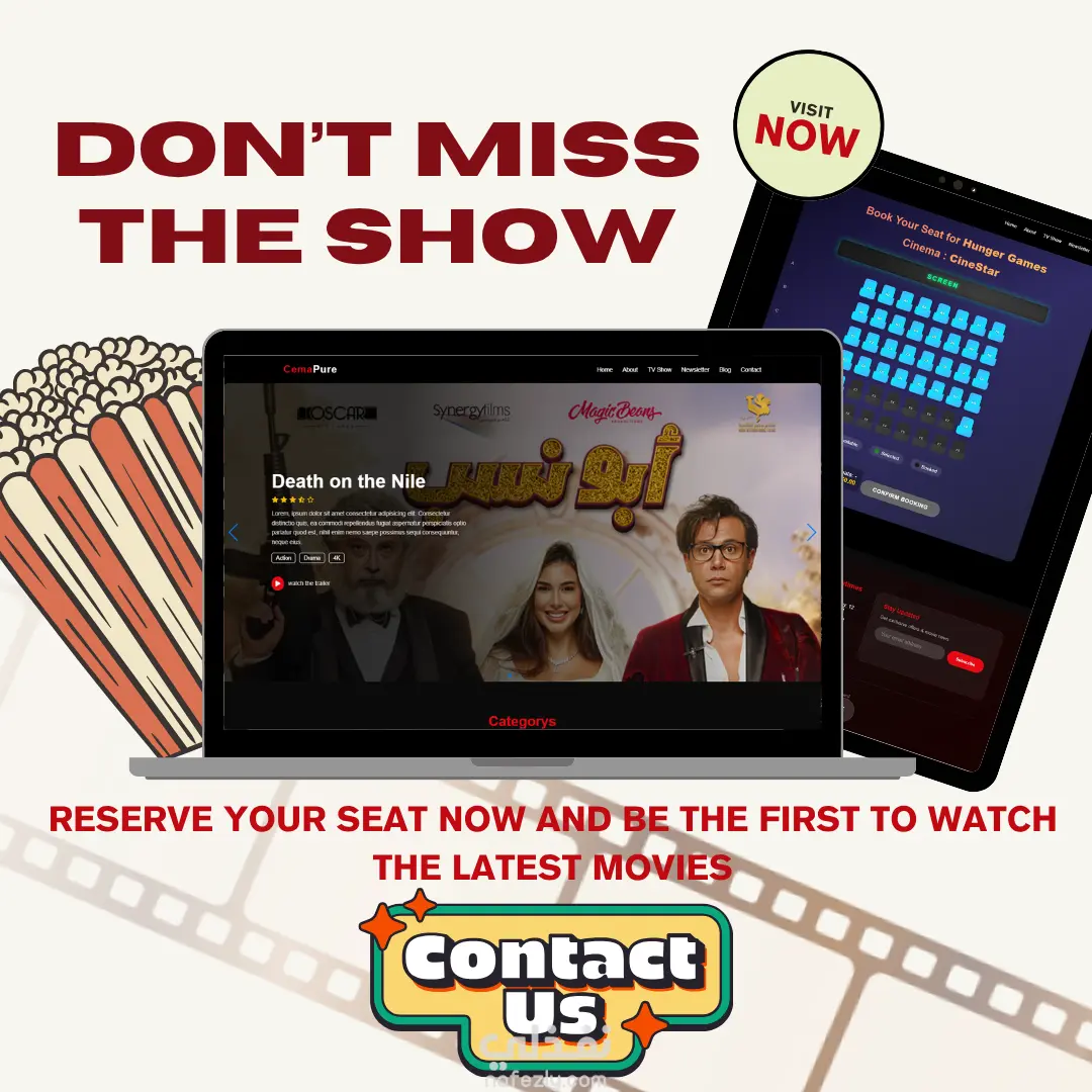 سيما بيور هو منصة متكاملة لحجز تذاكر السينما وادارة العروض السينمائية باحترافية تامة يعتمد المشروع على تقنيات اي اس بي دوت نت كور لتوفير نظام قوي وسريع يسمح للمستخدمين باستكشاف احدث الافلام والبحث عن دور السينما وحجز مقاعدهم بسهولة فائقة يتضمن المشروع لوحة تحكم متطورة للمديرين تسمح باضافة الافلام والممثلين وادارة التصنيفات والسينمات مع تكامل كامل لنظام مدفوعات سترايب لضمان عمليات دفع آمنة وسلسة يتميز التصميم بجمالية عصرية تدعم الوضعين المظلم والمضيء مع واجهات متجاوبة تضمن تجربة ممتعة على كافة الاجهزة يهدف سيما بيور الى تقديم حل تقني متكامل يجمع بين المتعة في التصفح والسهولة في الحجز والادارة المالية المنظمة