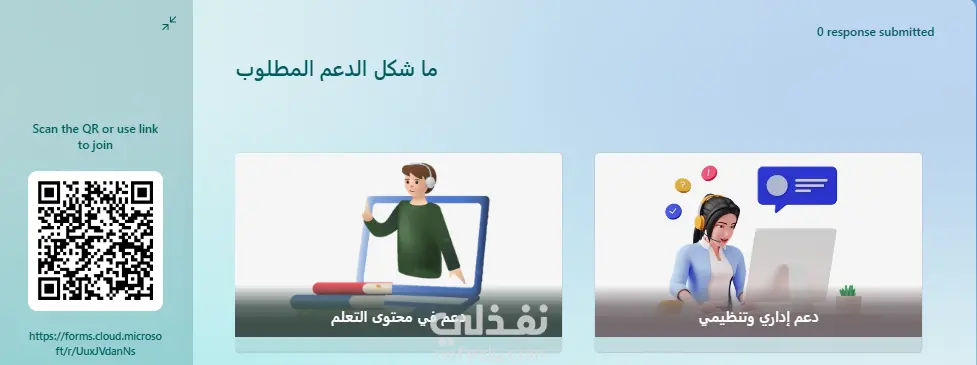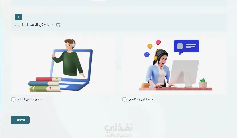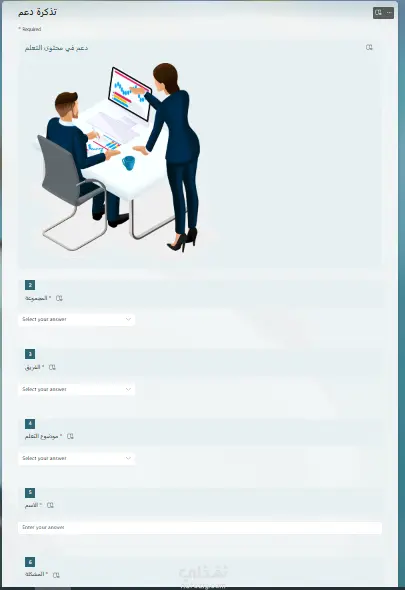 تتطلب البيئات التعليمية القائمة على الويب تقديم الدعم التقني والدعم التعليمي للمتعلمين كحق أصيل لهم خلال عمليات التعليم والتدريب على الإنترنت. هدف النموذج استلام تذاكر الدعم من المتدربين وحصر المشكلات التقنية والتعليمية التي تواجههم والرد على استفساراتهم وحل المشكلات الموجودة. وهو ما يزيد من الراحة النفسية لديهم ويزيد من تحفيزهم لمواصلة التعليم والتدريب بشكل إيجابي فعال