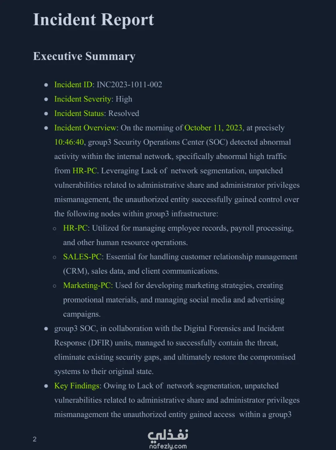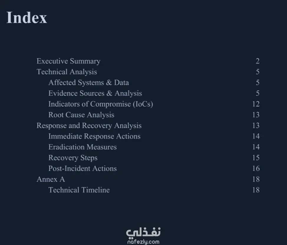 تم إعداد تقرير استجابة للحوادث شامل يتضمن: