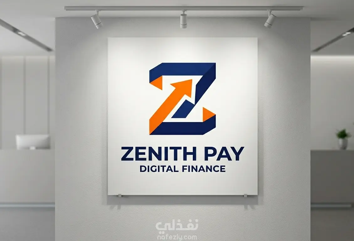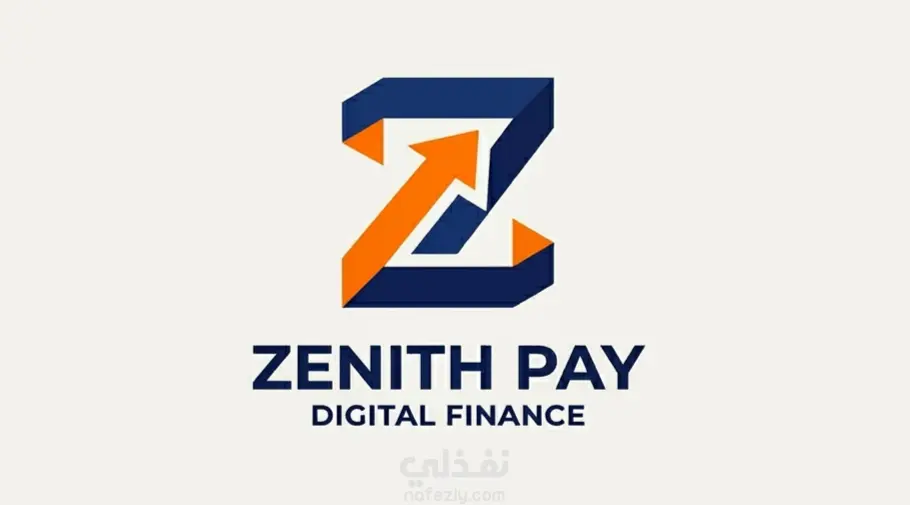 شعار يجسد مستقبل التكنولوجيا المالية Zenith Pay من خلال تصميم هندسي يدمج بين حرف 'Z' وسهم صاعد في المساحة السلبية، ليعكس مفهوم النمو المالي المستمر والتحول الرقمي السريع. تم اختيار الألوان بعناية لتمزج بين الأزرق الداكن وطاقة البرتقالي، مما يمنح العلامة التجارية مظهراً موثوقاً وعصرياً في آن واحد.