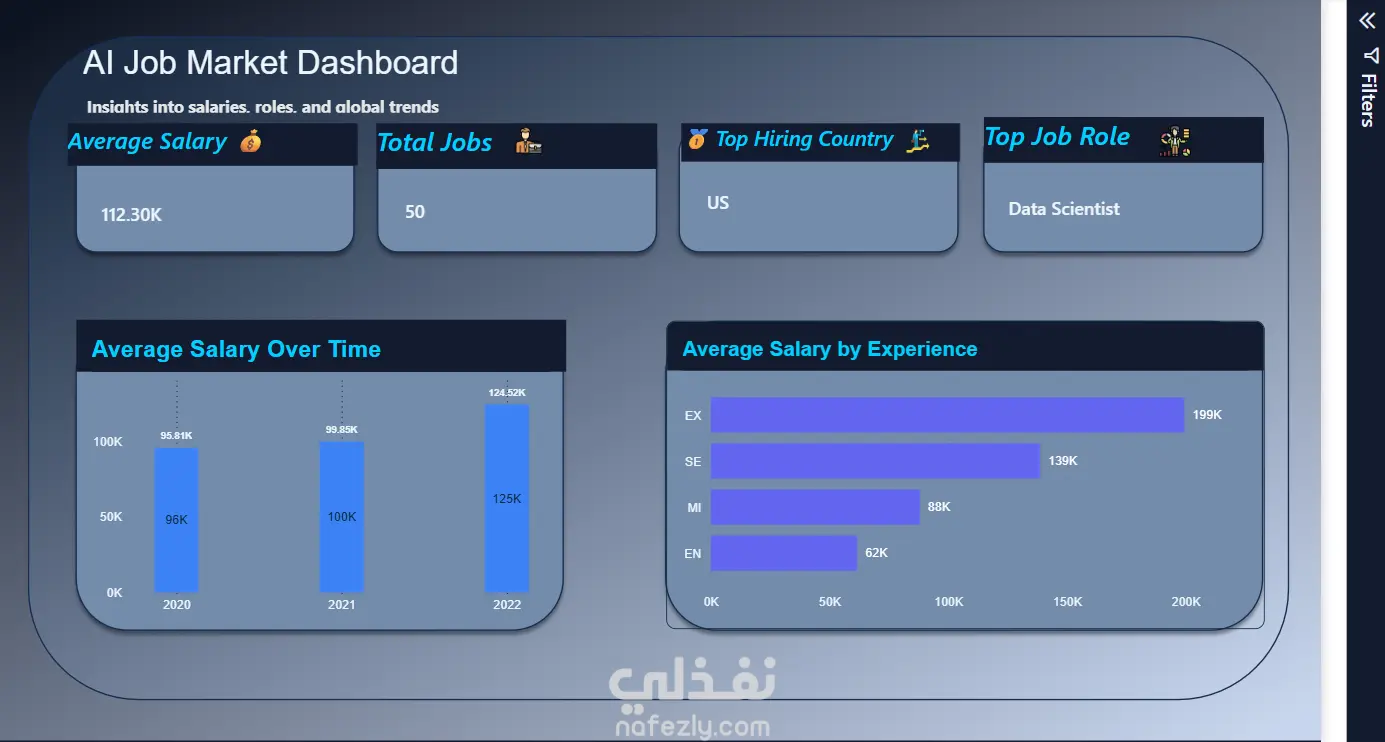 ⚡ مميزات الخدمة: • تصميم Dashboard احترافي وعصري يناسب عرض البيانات بشكل واضح وجذاب • تحويل البيانات الخام إلى Insights تساعد في اتخاذ قرارات أفضل • استخدام أفضل ممارسات Data Visualization و Data Storytelling • إمكانية إضافة فلاتر تفاعلية (Slicers) لسهولة تحليل البيانات • تصميم متناسق من حيث الألوان والتنسيق (UI/UX احترافي) • سرعة في التنفيذ مع الالتزام بالمواعيد • قابلية التعديل حسب طلب العميل • دعم بعد التسليم لضمان رضا العميل • العمل على مختلف أنواع البيانات (مبيعات – موارد بشرية – سوق عمل – وغيرها) • استخدام أدوات احترافية مثل Power BI و Excel • تنظيم البيانات وتنظيفها قبل التحليل لضمان دقة النتائج • عرض النتائج بشكل مبسط وسهل الفهم حتى لغير المتخصصين